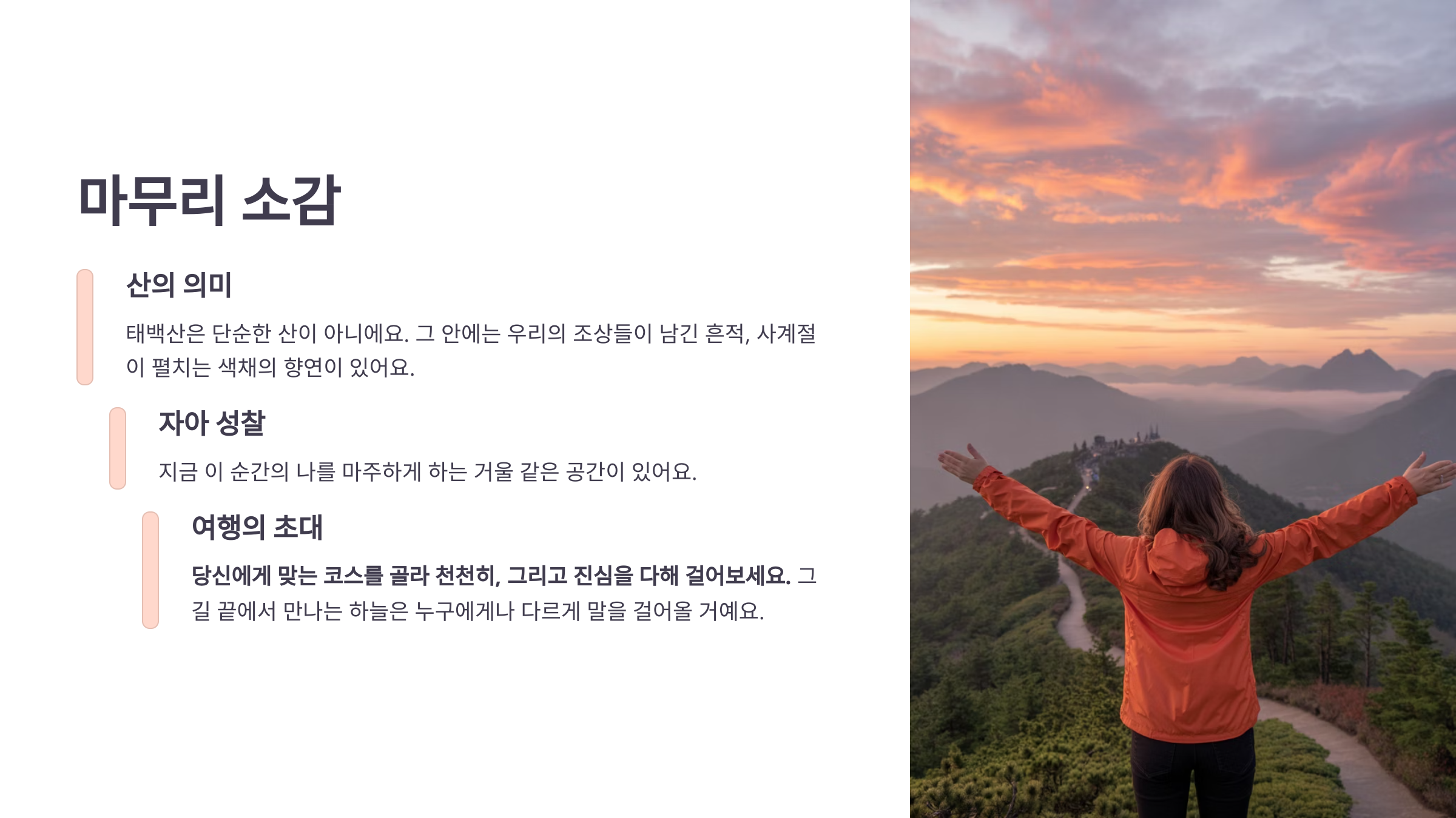 태백산은 단순한 산이 아니에요. 그 안에는 우리의 조상들이 남긴 흔적, 사계절이 펼치는 색채의 향연, 그리고 지금 이 순간의 나를 마주하게 하는 거울 같은 공간이 있어요. 이 글이 여러분의 작은 휴식이자 여행의 계기가 되었으면 좋겠어요.
