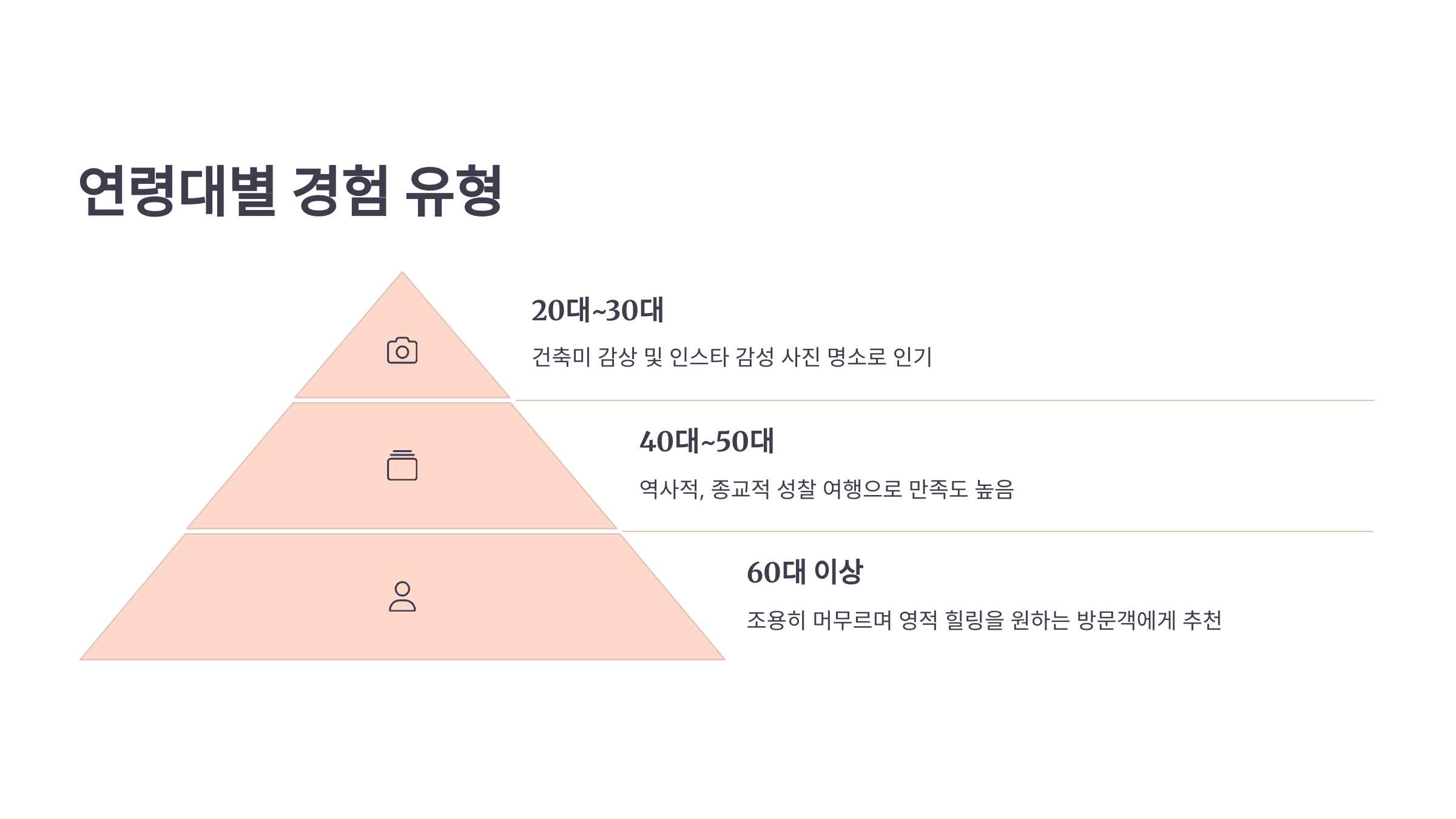 - 40대~50대: 역사적, 종교적 성찰 여행으로 만족도 높음