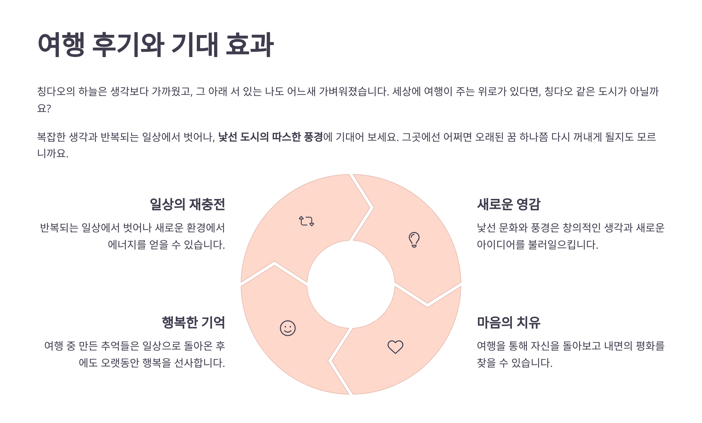 세상에 여행이 주는 위로가 있다면, 칭다오 같은 도시가 아닐까요? 복잡한 생각과 반복되는 일상에서 벗어나, 낯선 도시의 따스한 풍경에 기대어 보세요.