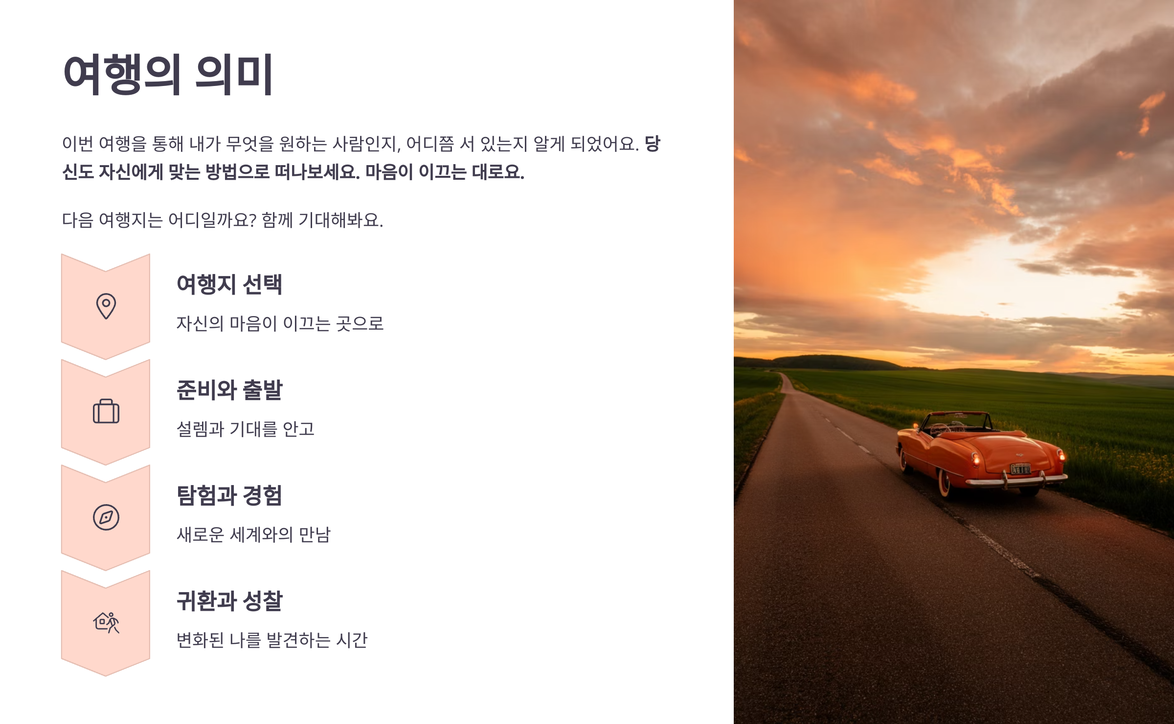 당신도 자신에게 맞는 방법으로 떠나보세요. 마음이 이끄는 대로요.