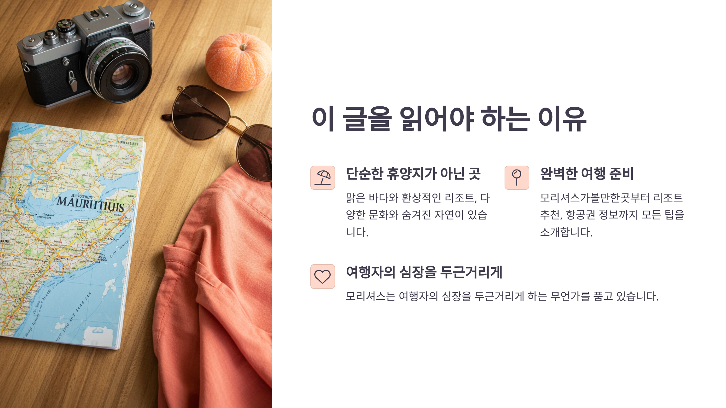 이 글에서는 모리셔스가볼만한곳부터 모리셔스리조트추천, 모리셔스항공권 정보까지, 완벽한 여행을 준비할 수 있는 모든 팁을 소개한다.