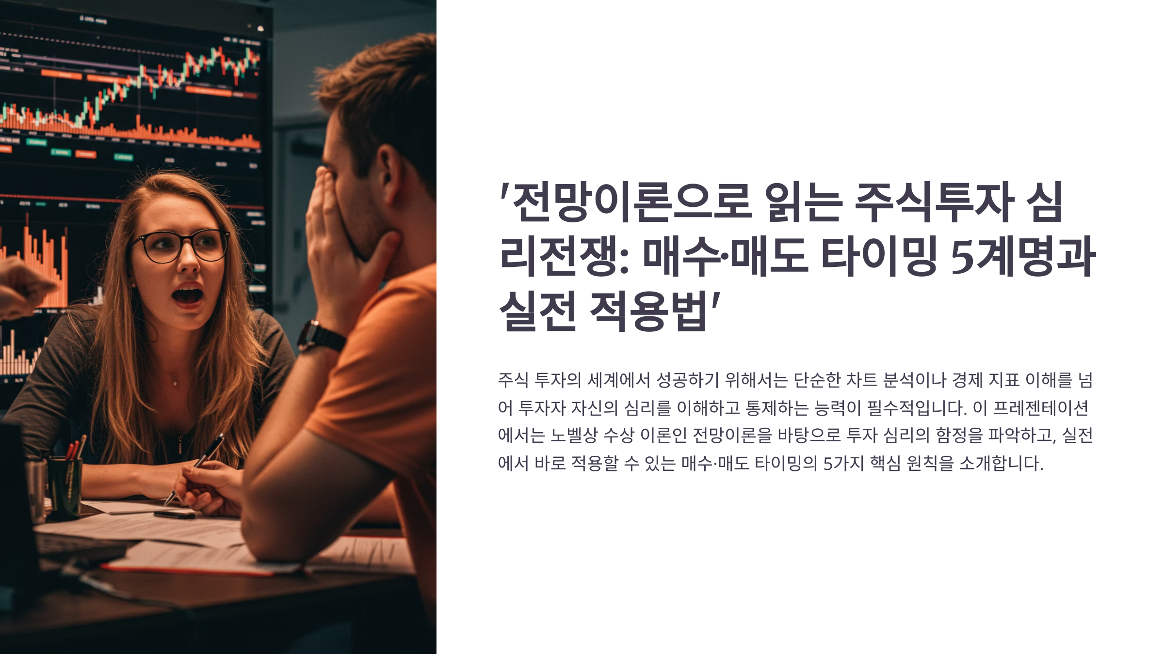 이 글에서는 전망이론과 매수·매도 타이밍 5계명을 통해, 투자 심리의 함정에서 벗어나 실전에 바로 적용할 수 있는 구체적 전략을 제시합니다.