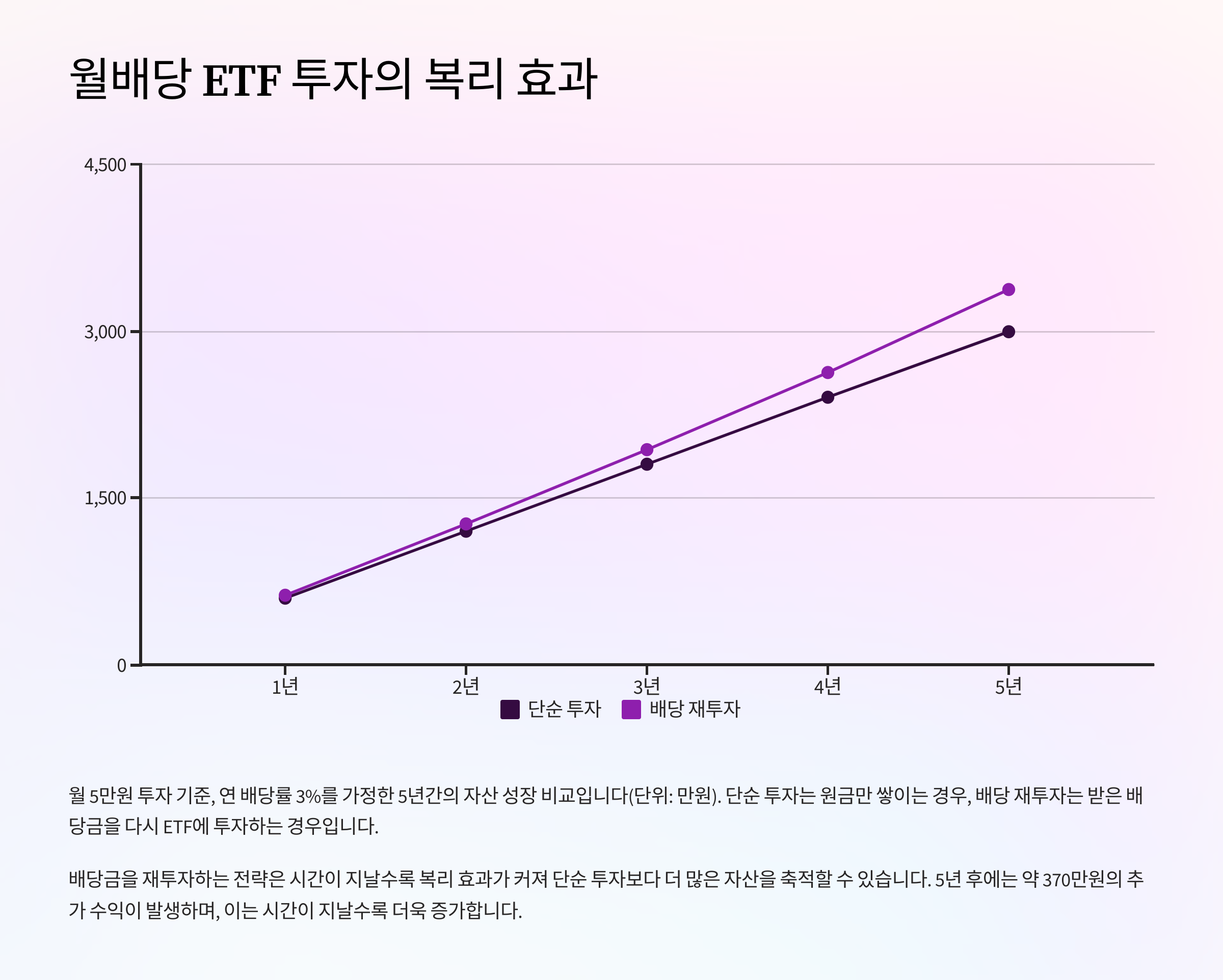 월배당 ETF는 단순히 수익을 보는 것을 넘어서, 복리 효과로 자산을 축적하는 데 탁월한 도구가 됩니다.