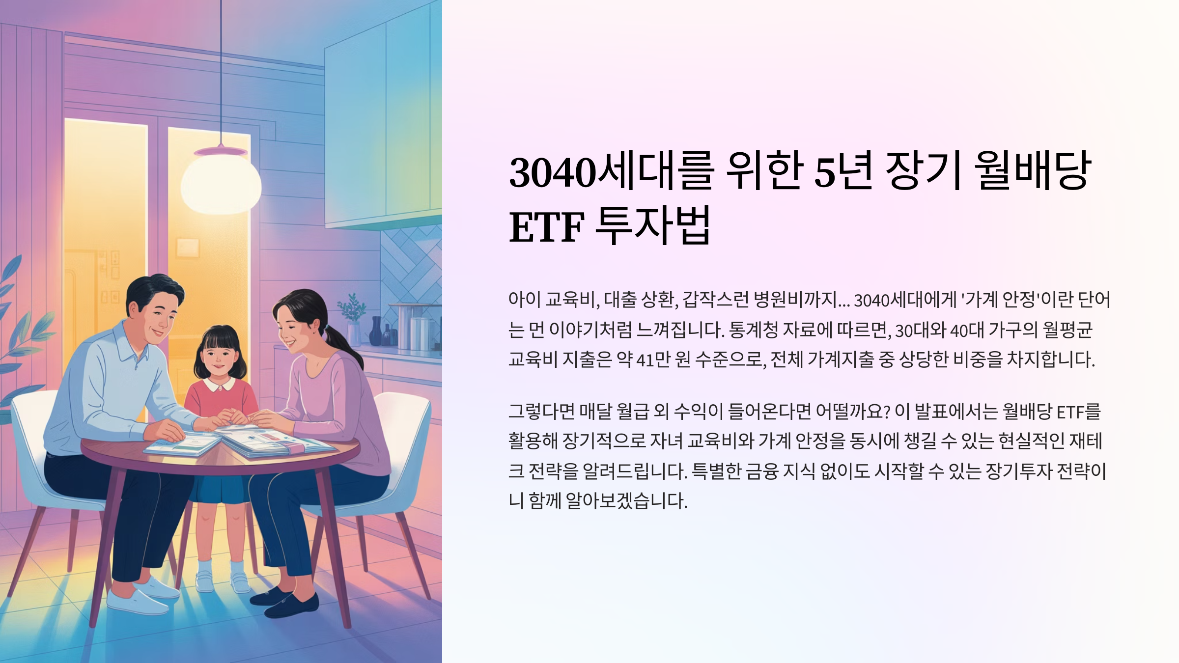 #ETF투자 #월배당ETF #3040재테크 #자녀교육비 #장기투자전략 #소액투자 #가계안정 #배당재테크 #ETF초보 #월급외수익