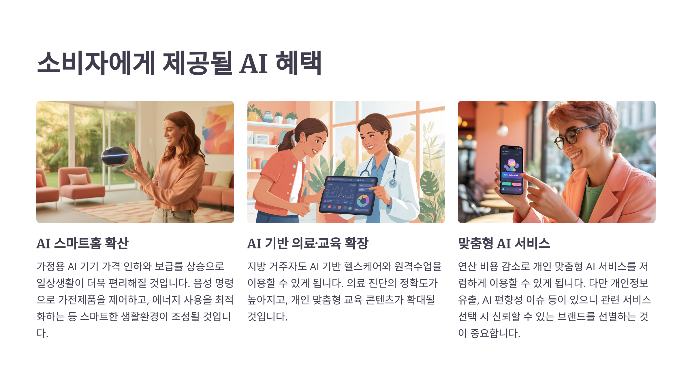 - 소비자: AI 기기 수요 급증, 맞춤형 서비스 이용 증가