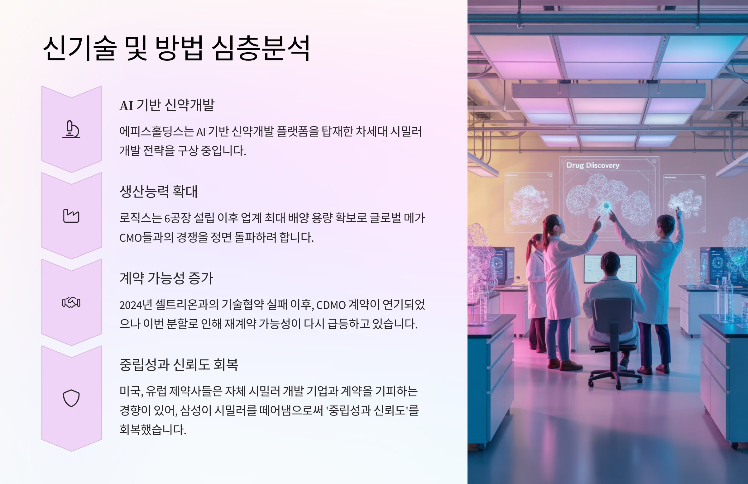 이번 인적분할은 단순한 기업 분리가 아니다. 에피스홀딩스는 AI 기반 신약개발 플랫폼을 탑재한 차세대 시밀러 개발 전략을 구상 중이다. 또한 로직스는 6공장 설립 이후 업계 최대 배양 용량 확보로 글로벌 메가CMO들과의 경쟁을 정면 돌파하려 한다.