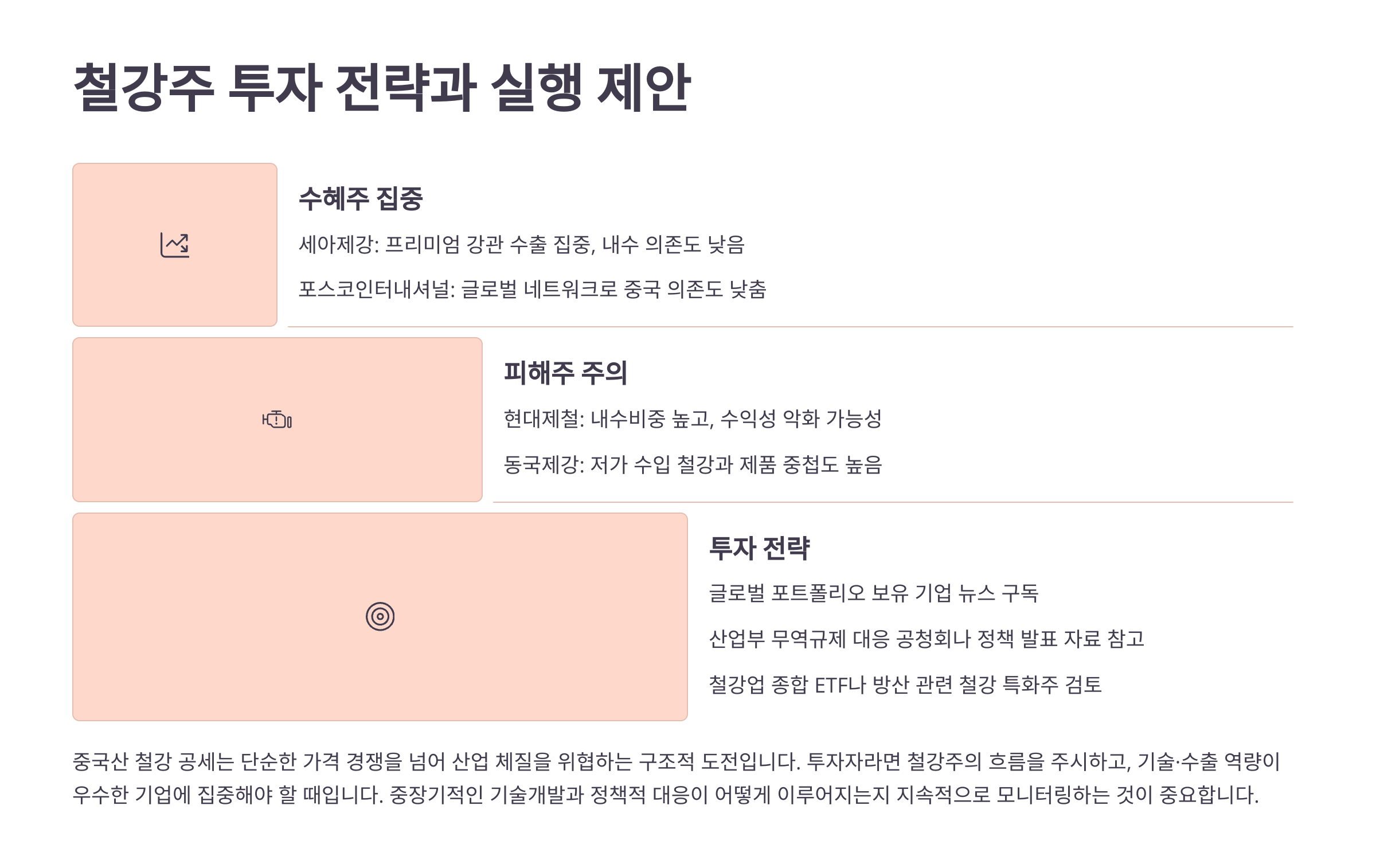 - 철강업 종합 ETF나 방산 관련 철강 특화주 검토