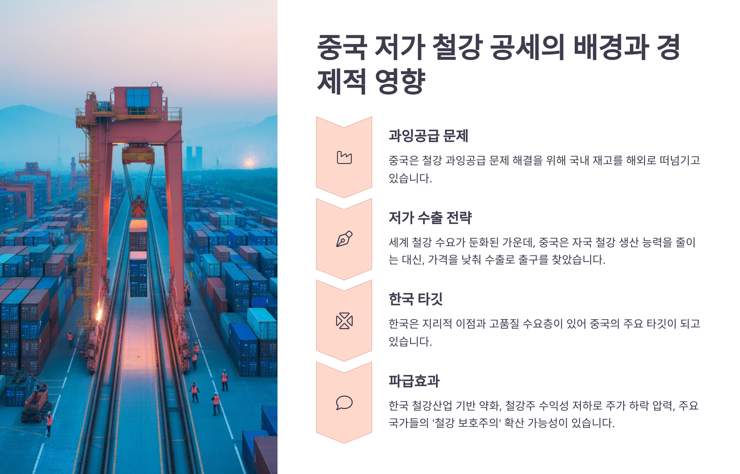 이 글을 통해 당신은 ‘중국 저가 공세의 배경’, ‘주요 대응 전략’, ‘관련 수혜 및 피해 철강주 정보’를 얻게 될 것입니다.