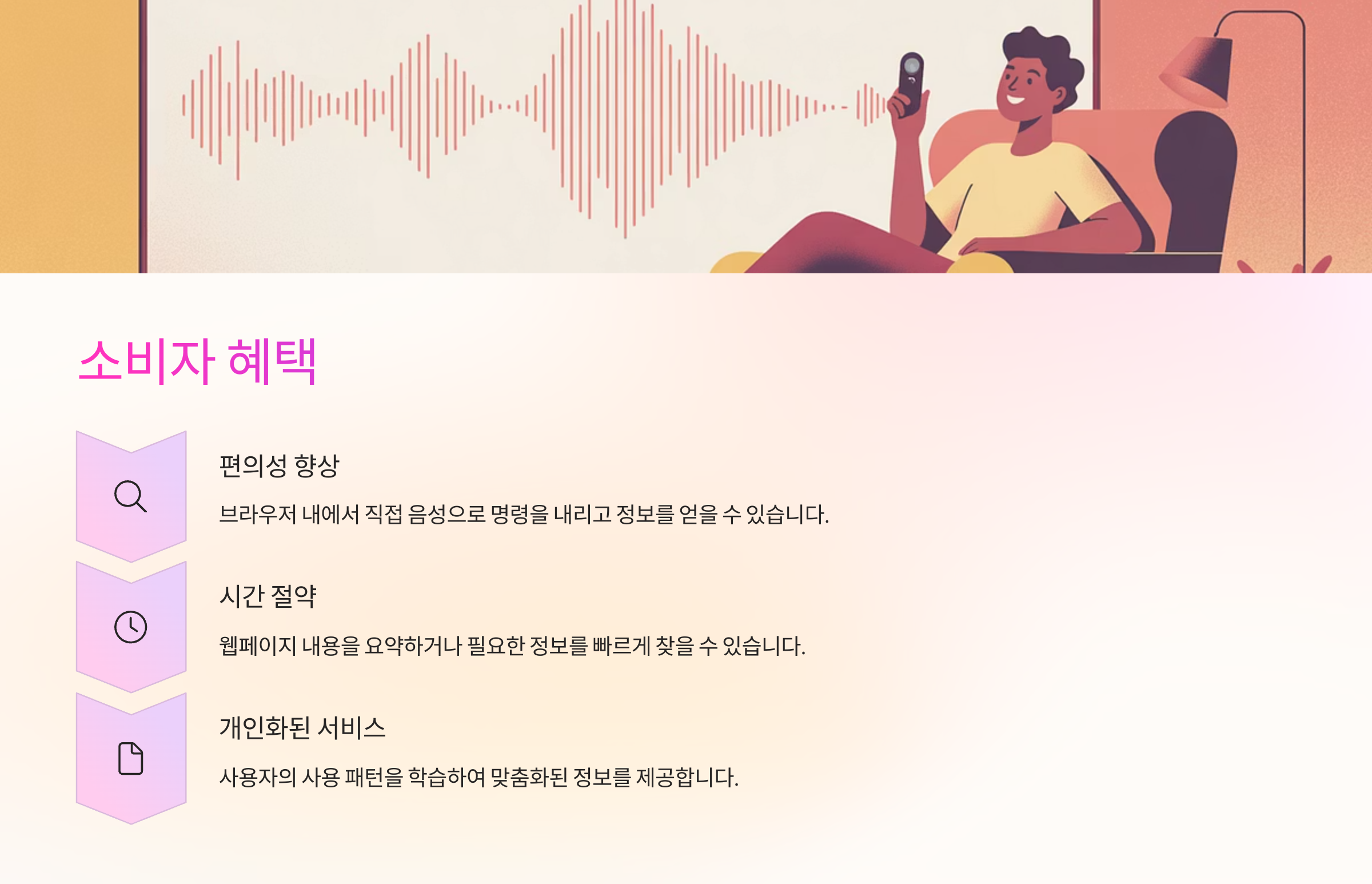 - 편의성 향상: 브라우저 내에서 직접 음성으로 명령을 내리고 정보를 얻을 수 있어 사용자의 편의성이 크게 향상됩니다.