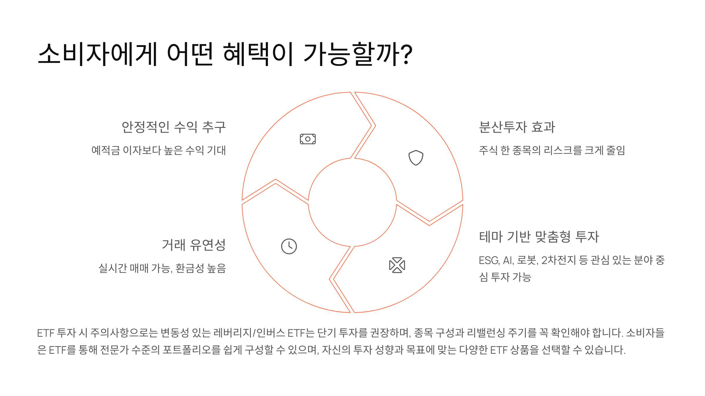 ETF는 더 이상 전문가만의 전유물이 아닙니다. 소액 투자자, 은퇴자, 사회 초년생까지 ETF를 통해 분산투자, 안정수익, 시장 트렌드 추종을 실현하고 있죠.