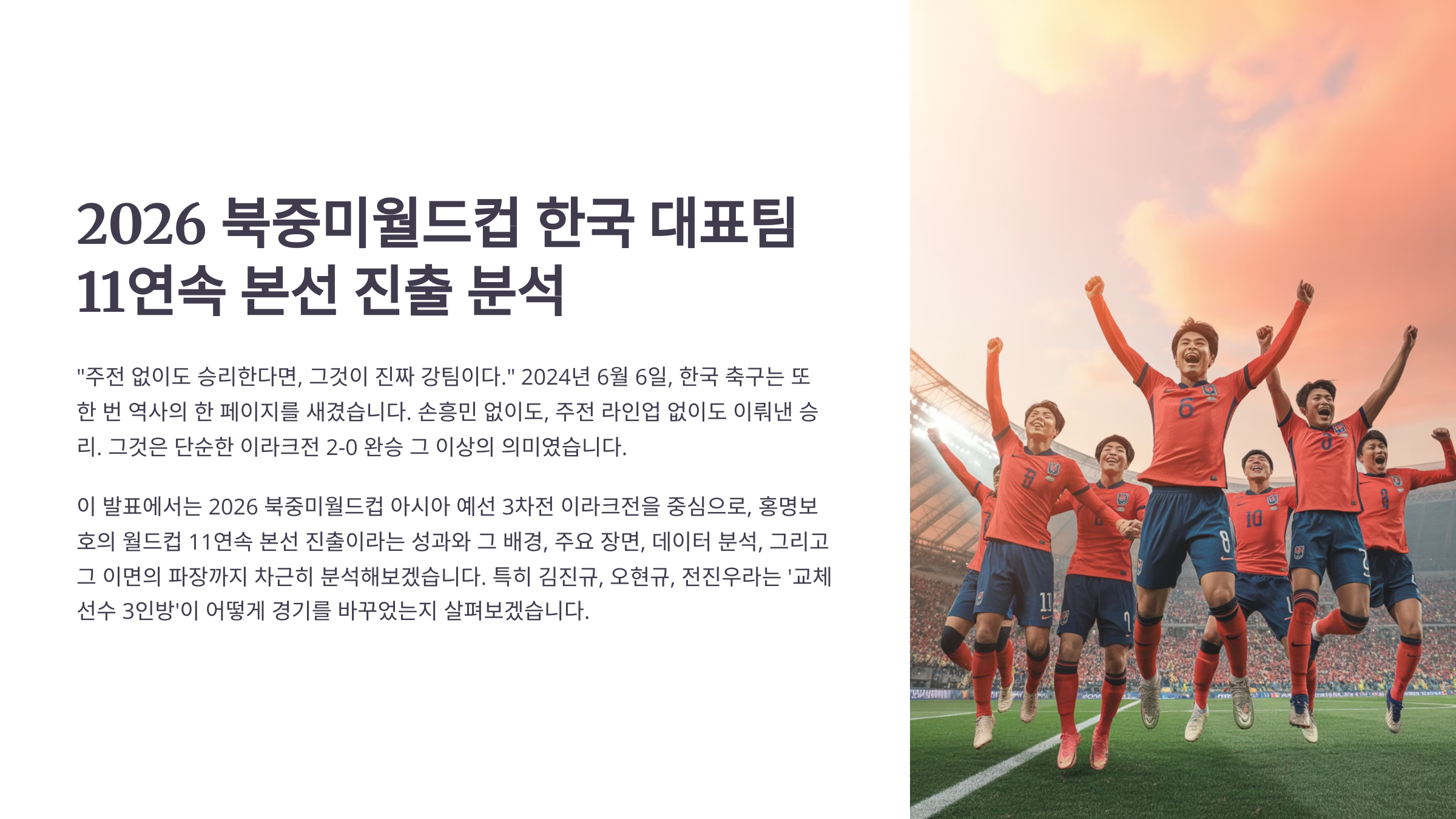 #2026월드컵 #한국축구대표팀 #홍명보감독 #김진규 #오현규 #전진우 #이라크전 #월드컵예선 #스포츠분석 #교체선수 #대표팀경쟁 #북중미월드컵 #축구마케팅 #대한축구협회 #쿠웨이트전