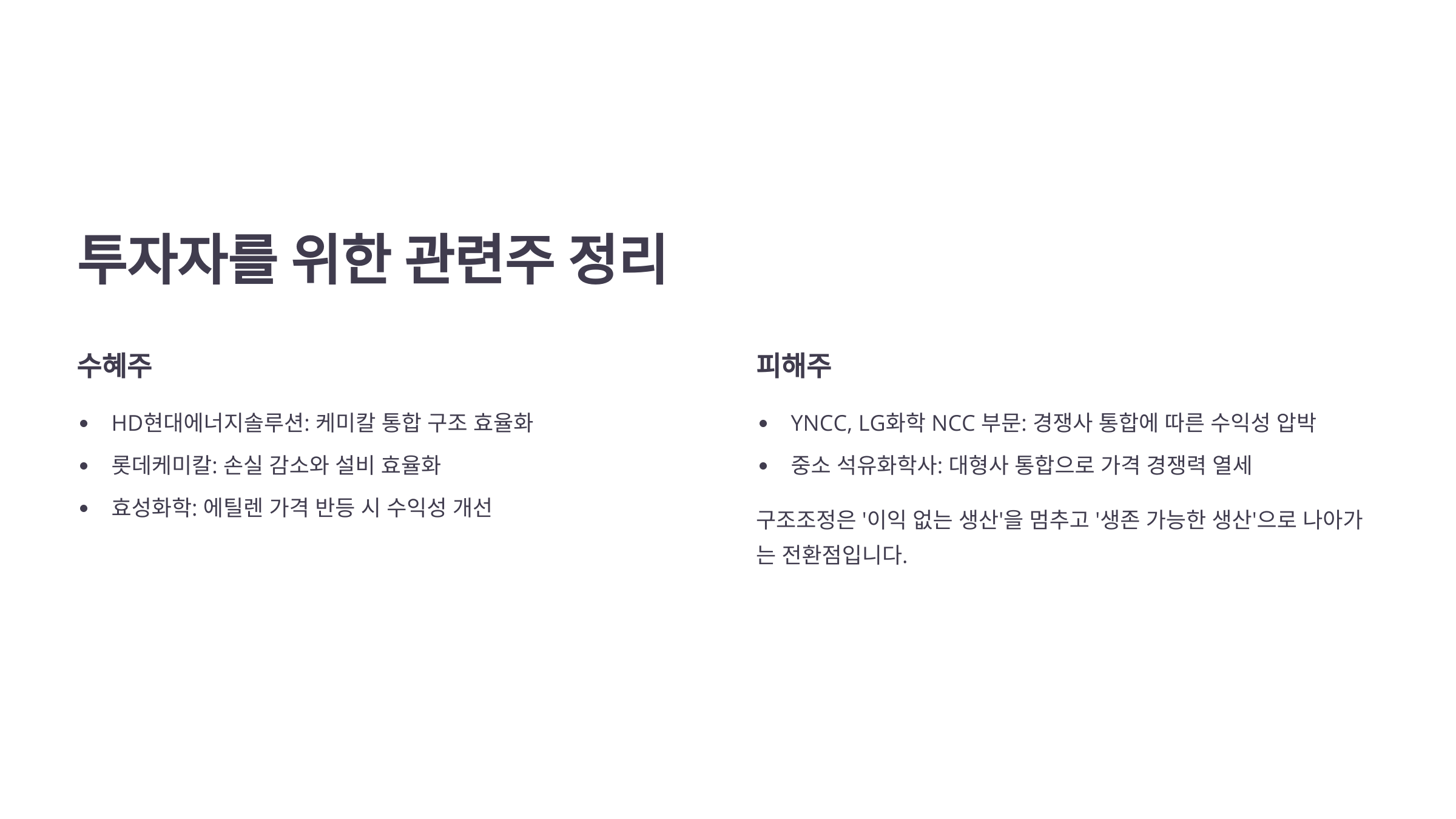 #롯데케미칼 #HD현대케미칼 #석유화학구조조정 #에틸렌시장 #NCC통합 #석유화학관련주 #수혜주정리 #프리즘기업리포트 #친환경전환 #에너지효율화