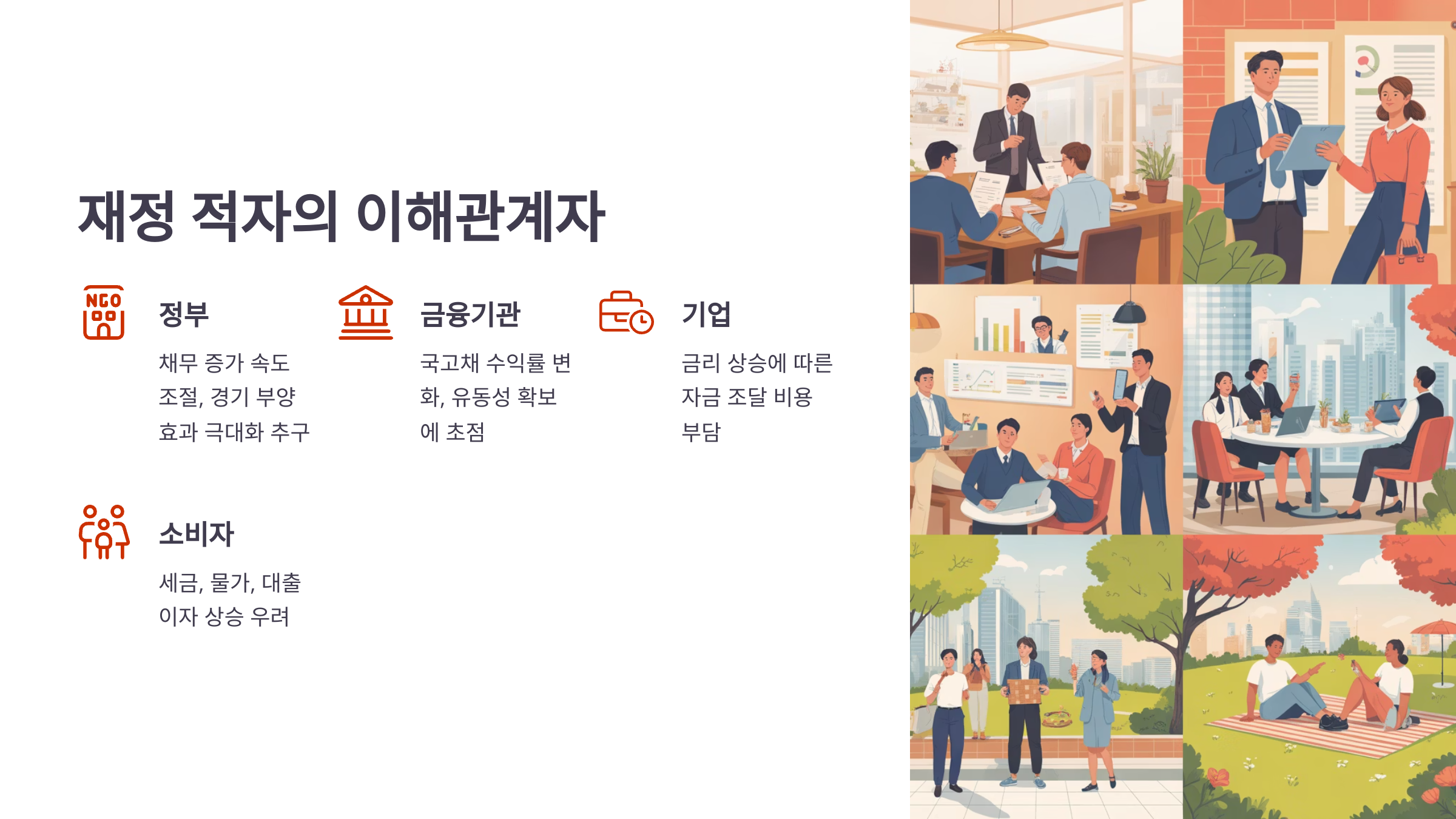 - 관심: 채무 증가 속도 조절, 경기 부양 효과 극대화