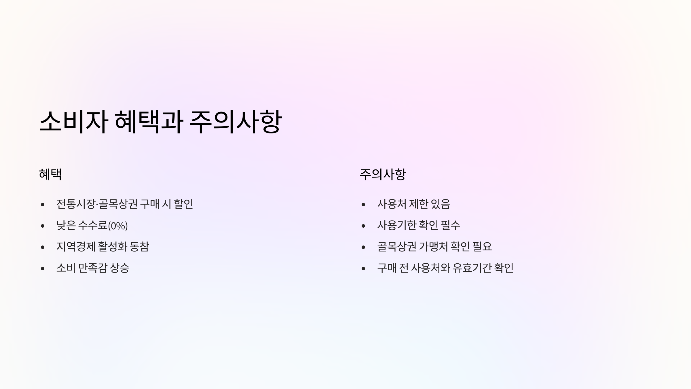 - 전통시장·골목상권에서 구매 시 할인이 가능하고,