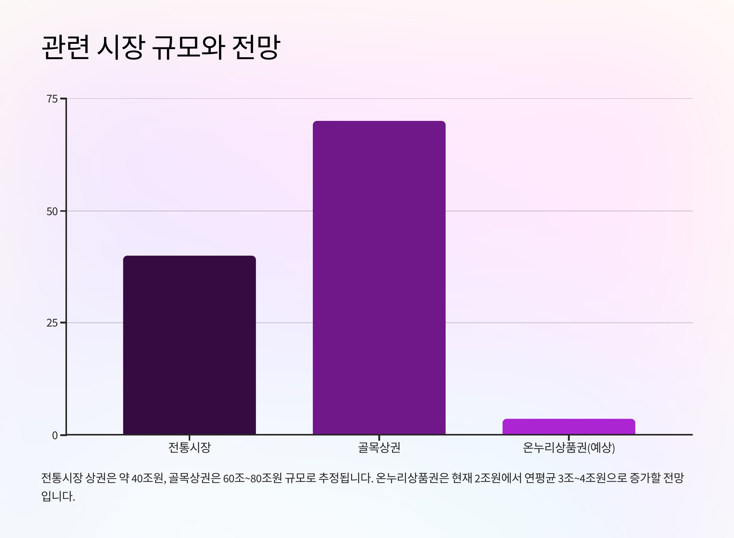 - 전통시장 상권 규모는 약 40조원대, 골목상권은 60조~80조원 추정