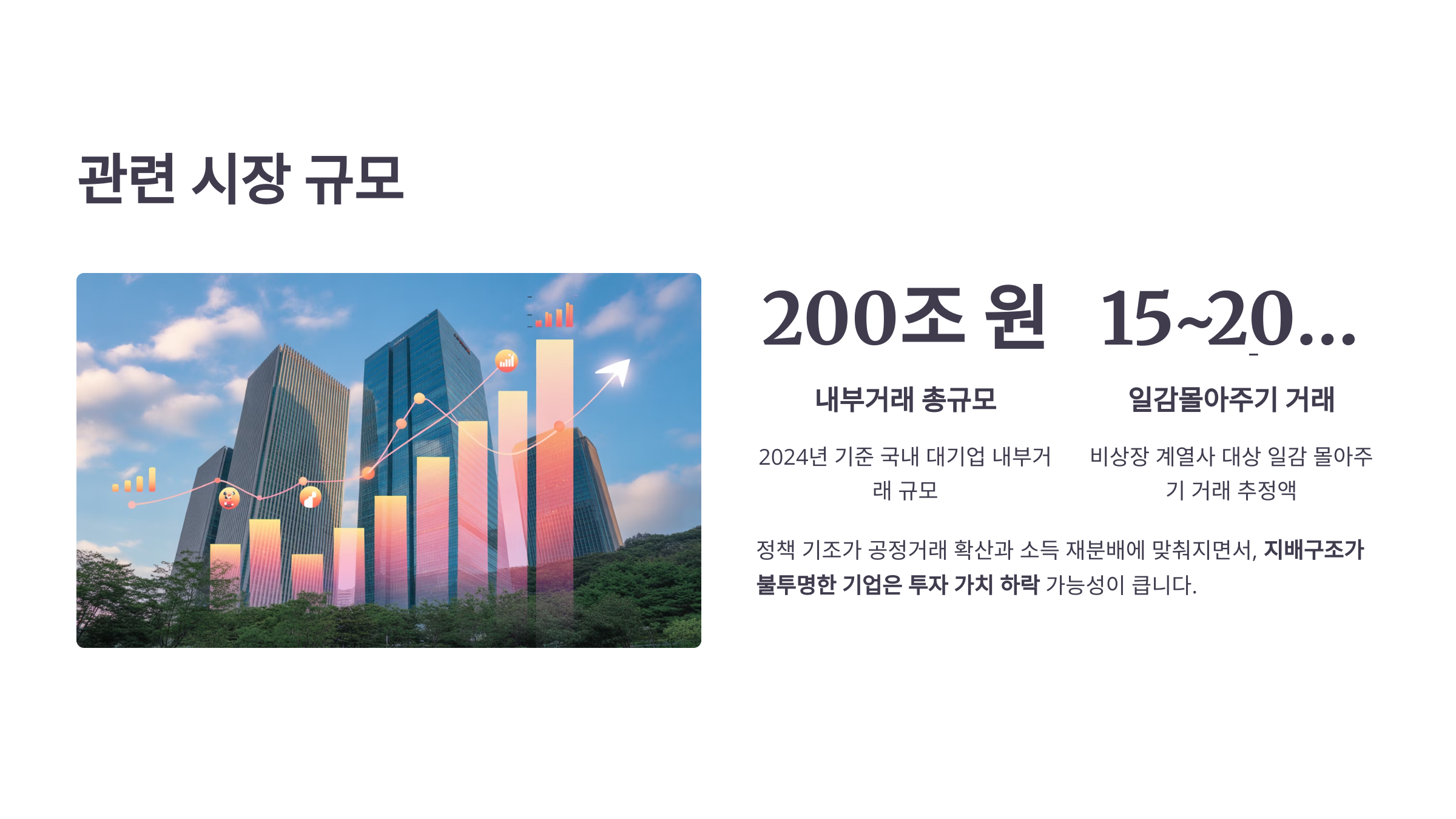 2024년 기준 국내 대기업 내부거래 규모는 약 200조 원. 그중 비상장 계열사 대상 일감 몰아주기 거래는 약 15~20조 원으로 추정됩니다.
