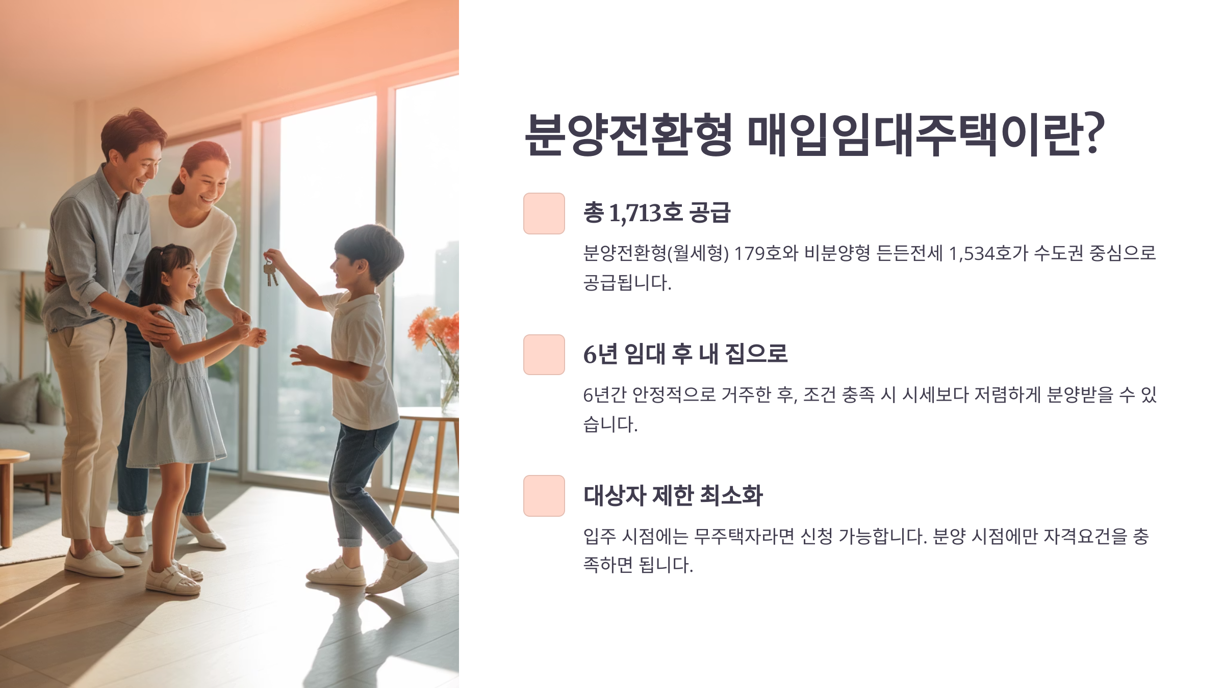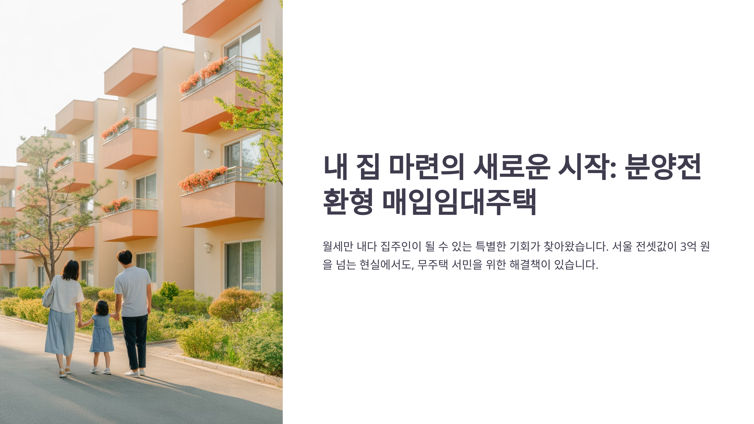 하지만 정부는 이런 현실 속에서도 무주택 서민을 위해 새로운 해결책을 내놓았습니다. 바로 분양전환형 매입임대주택입니다.