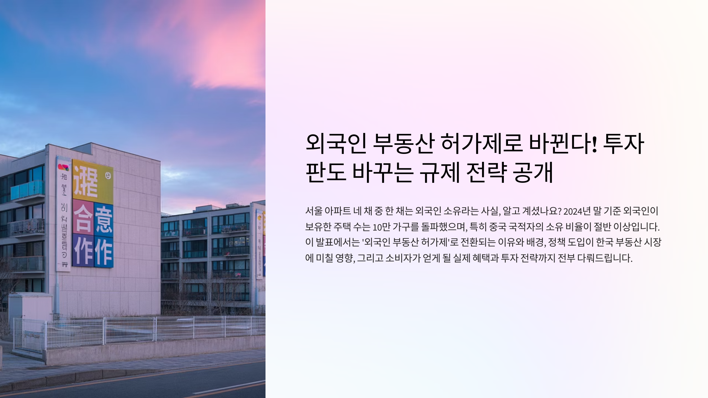 이 글에서는 ‘외국인 부동산 허가제’로 전환되는 이유와 배경, 정책 도입이 한국 부동산 시장에 미칠 영향, 그리고 소비자가 얻게 될 실제 혜택과 투자 전략까지 전부 다뤄드립니다.