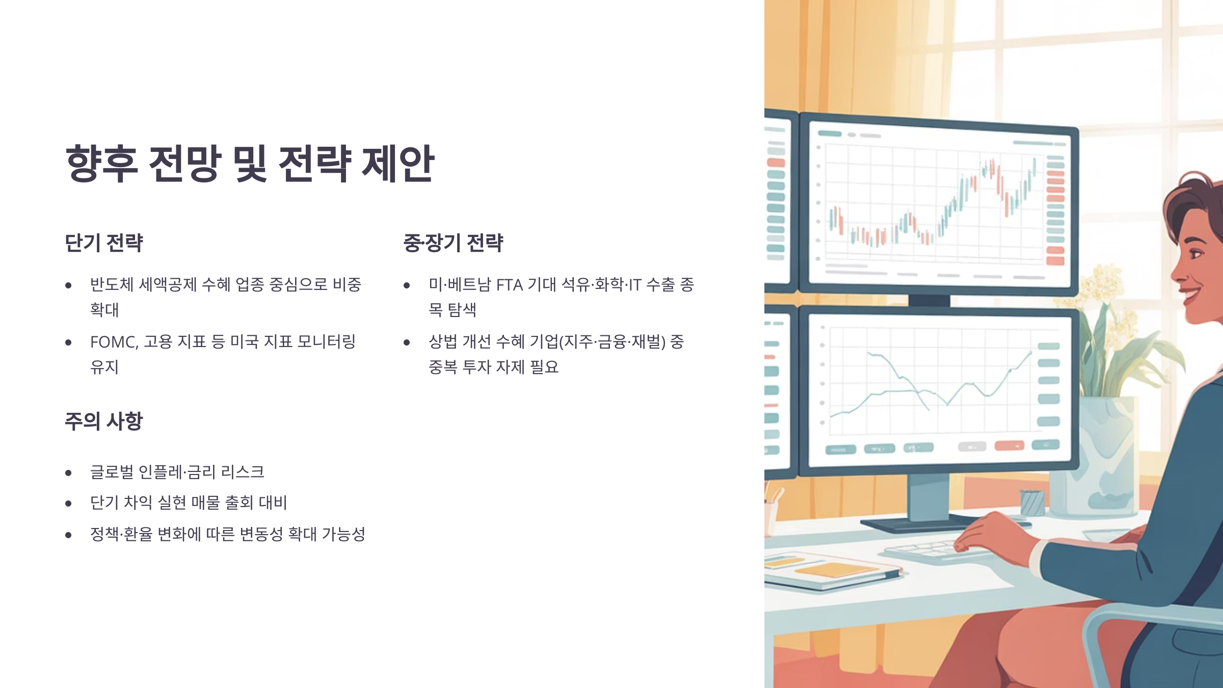 - 소재/철강: 베트남 FTA와 글로벌 수요 증가로 긍정적 영향