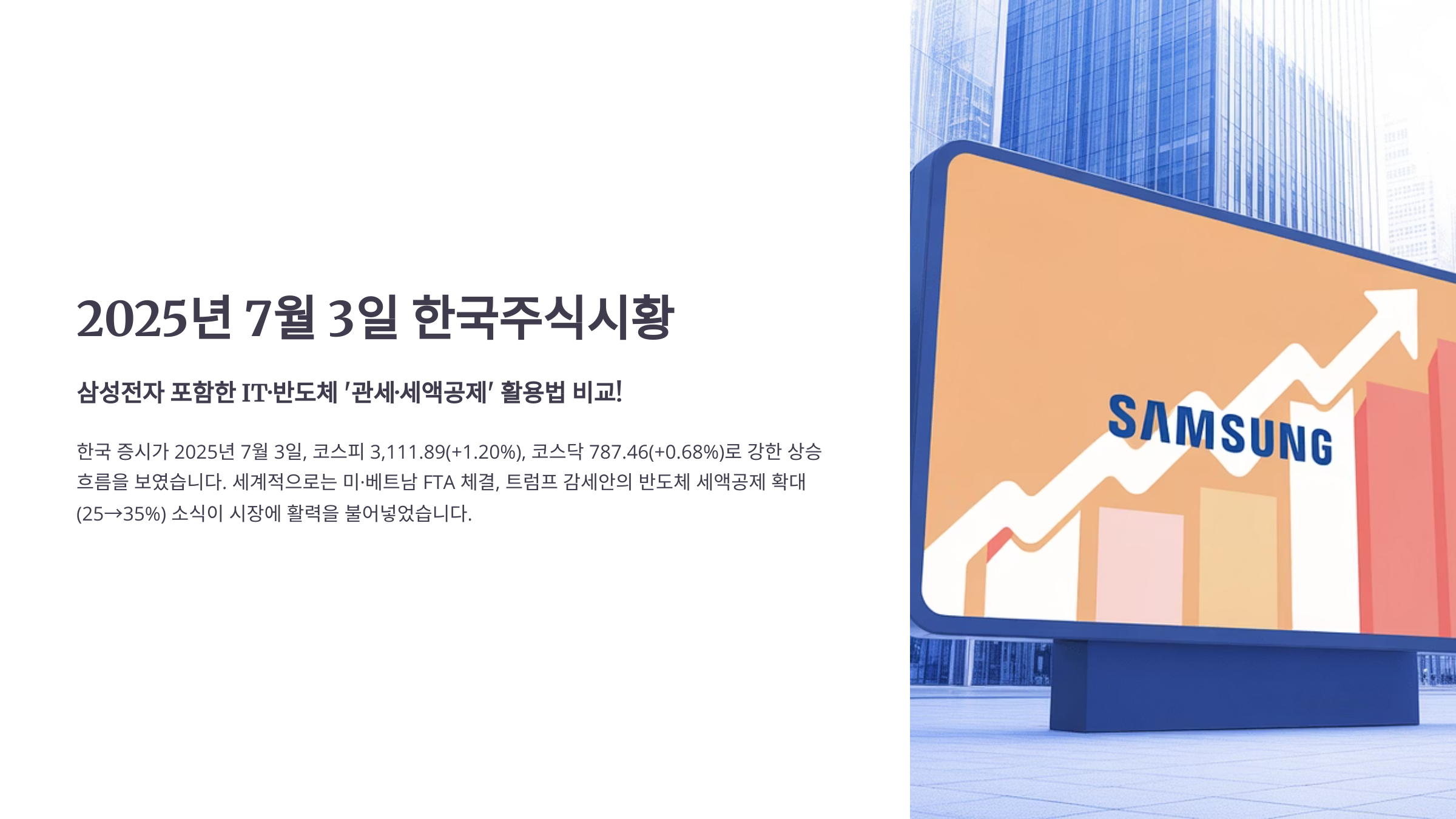 #한국증시 #7월3일 #코스피 #코스닥 #반도체세제공제 #삼성전자 #투자전략 #관세혜택 #상법개정 #시장전망