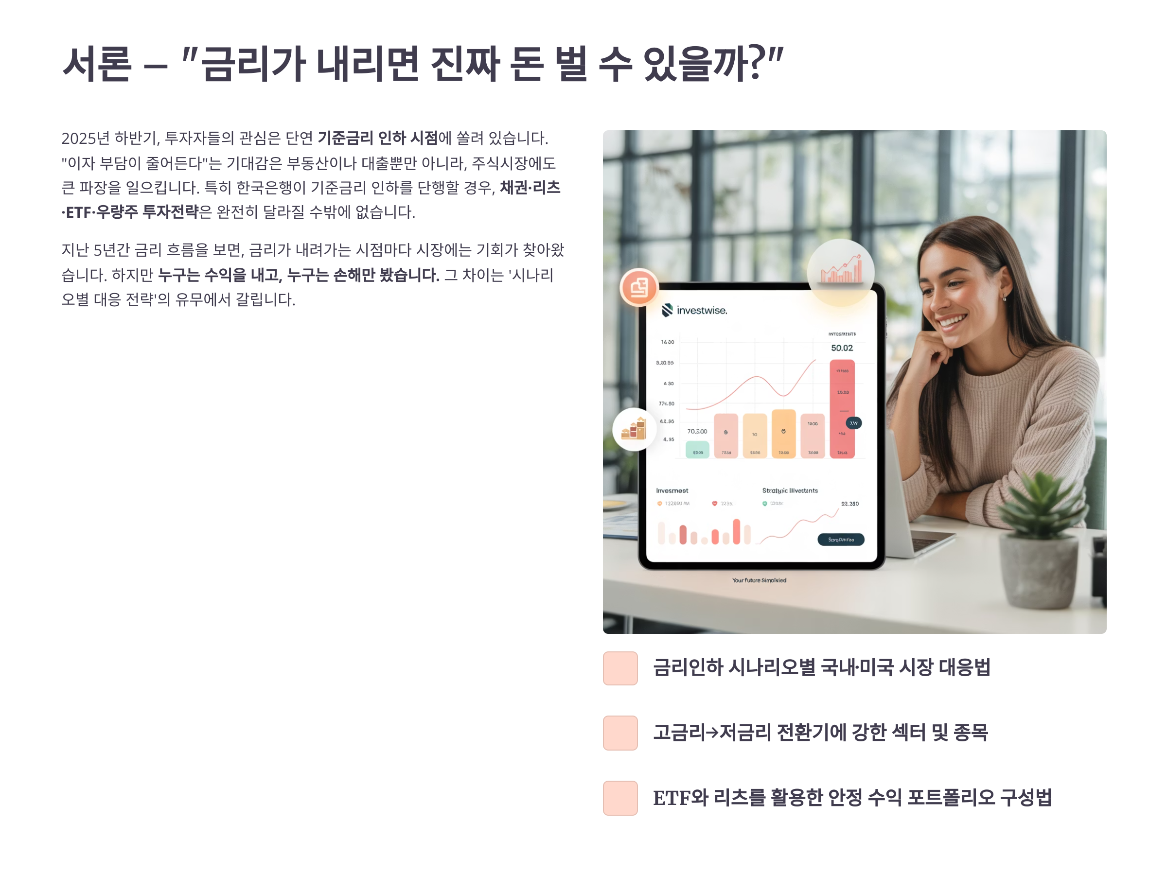 이제 본격적으로, "금리인하가 돈 되는 타이밍이 될 수 있는 이유"와 실전 전략을 확인해 보세요.