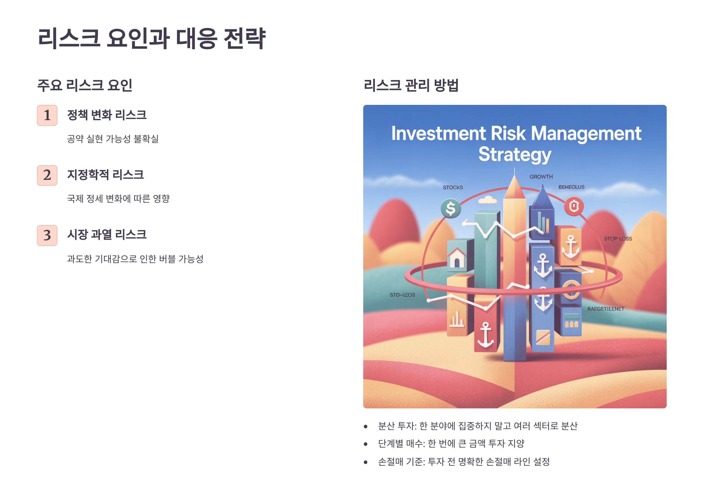 - 정책 변화 리스크: 공약 실현 가능성 불확실