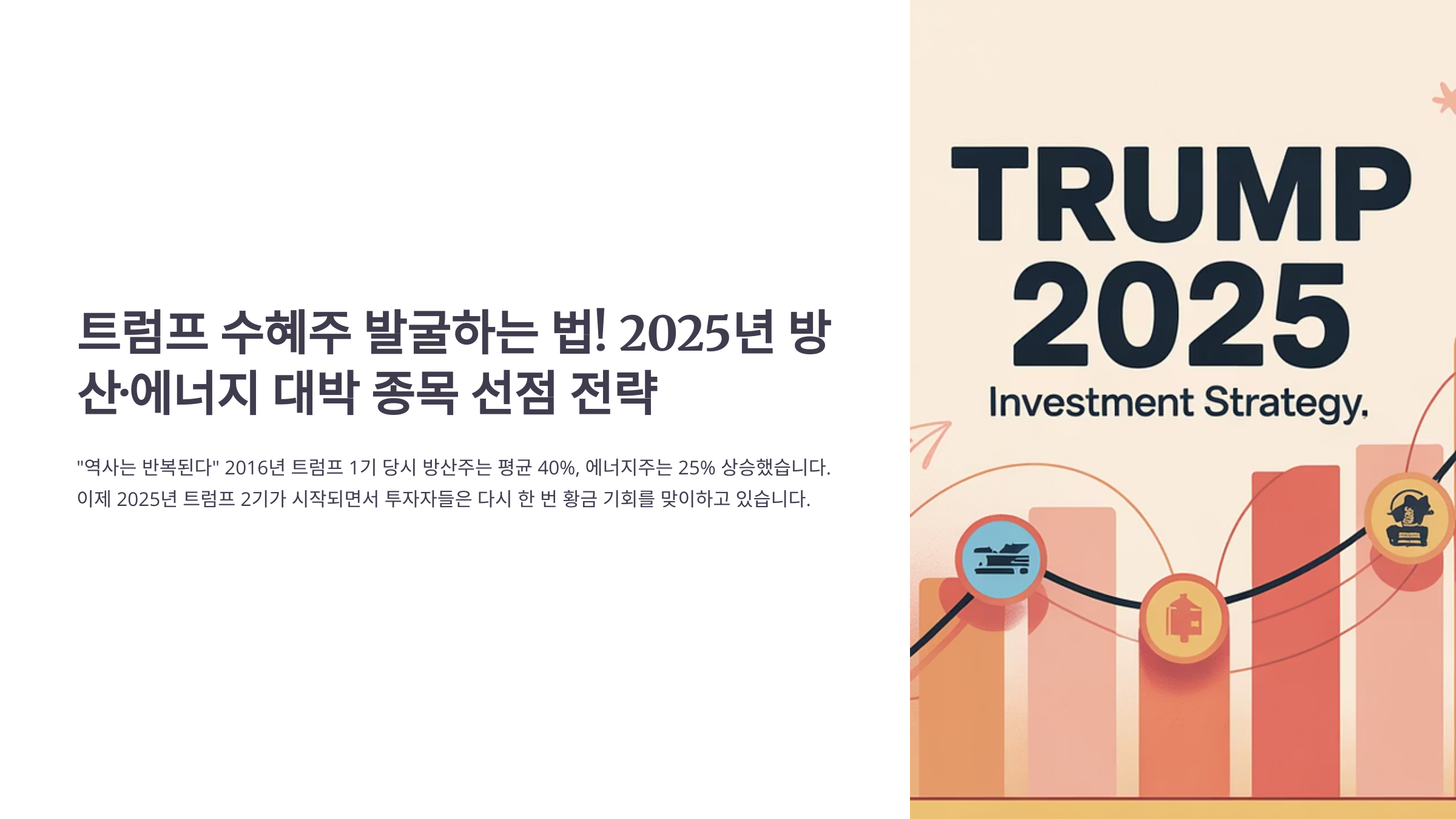 #트럼프수혜주 #방산주 #에너지주 #미국주식 #트럼프2기 #투자전략 #주식투자 #수혜주발굴 #관세정책 #방산투자 #에너지투자 #미국투자 #주식추천 #투자정보