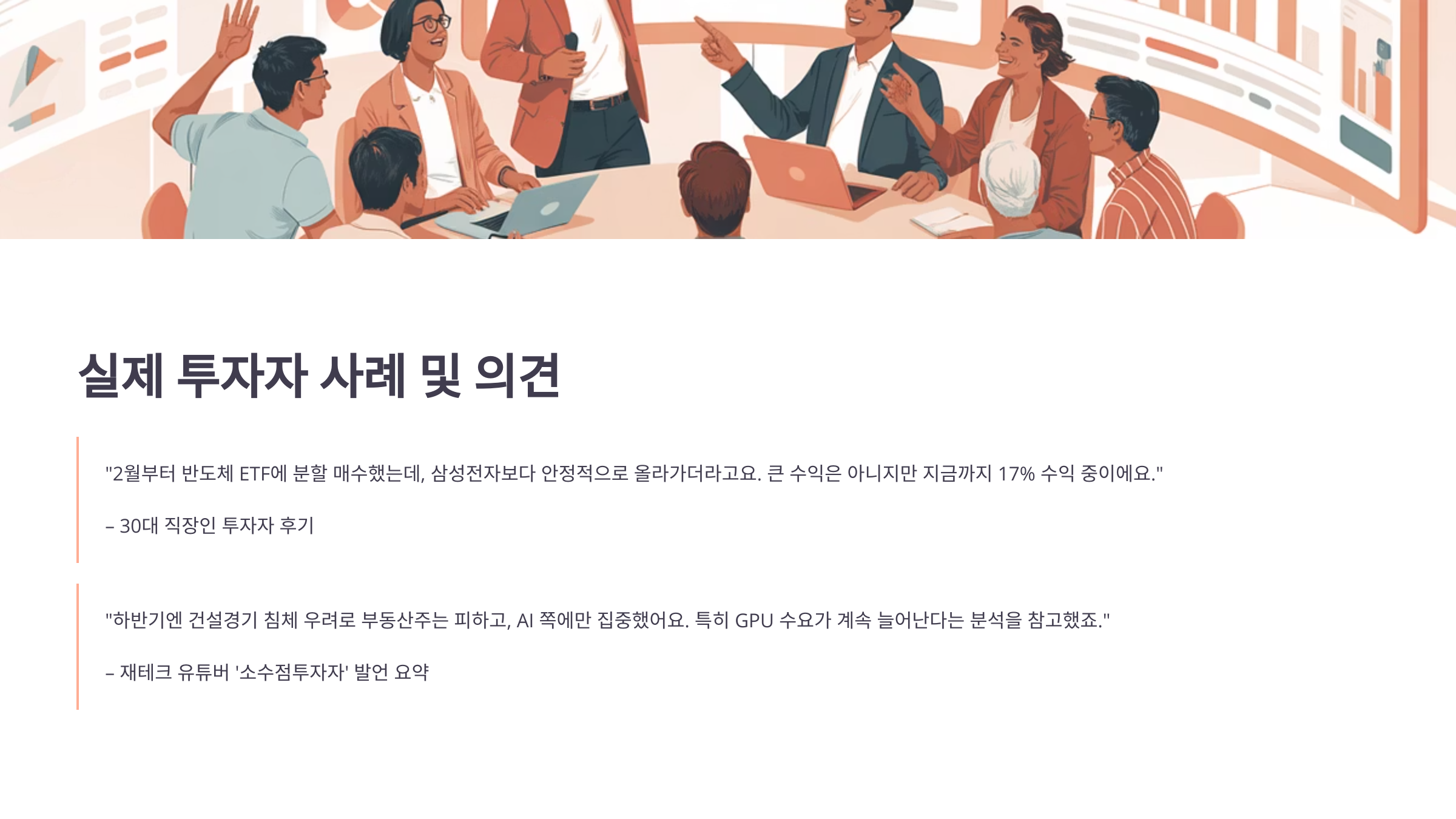 "2월부터 반도체 ETF에 분할 매수했는데, 삼성전자보다 안정적으로 올라가더라고요. 큰 수익은 아니지만 지금까지 17% 수익 중이에요."