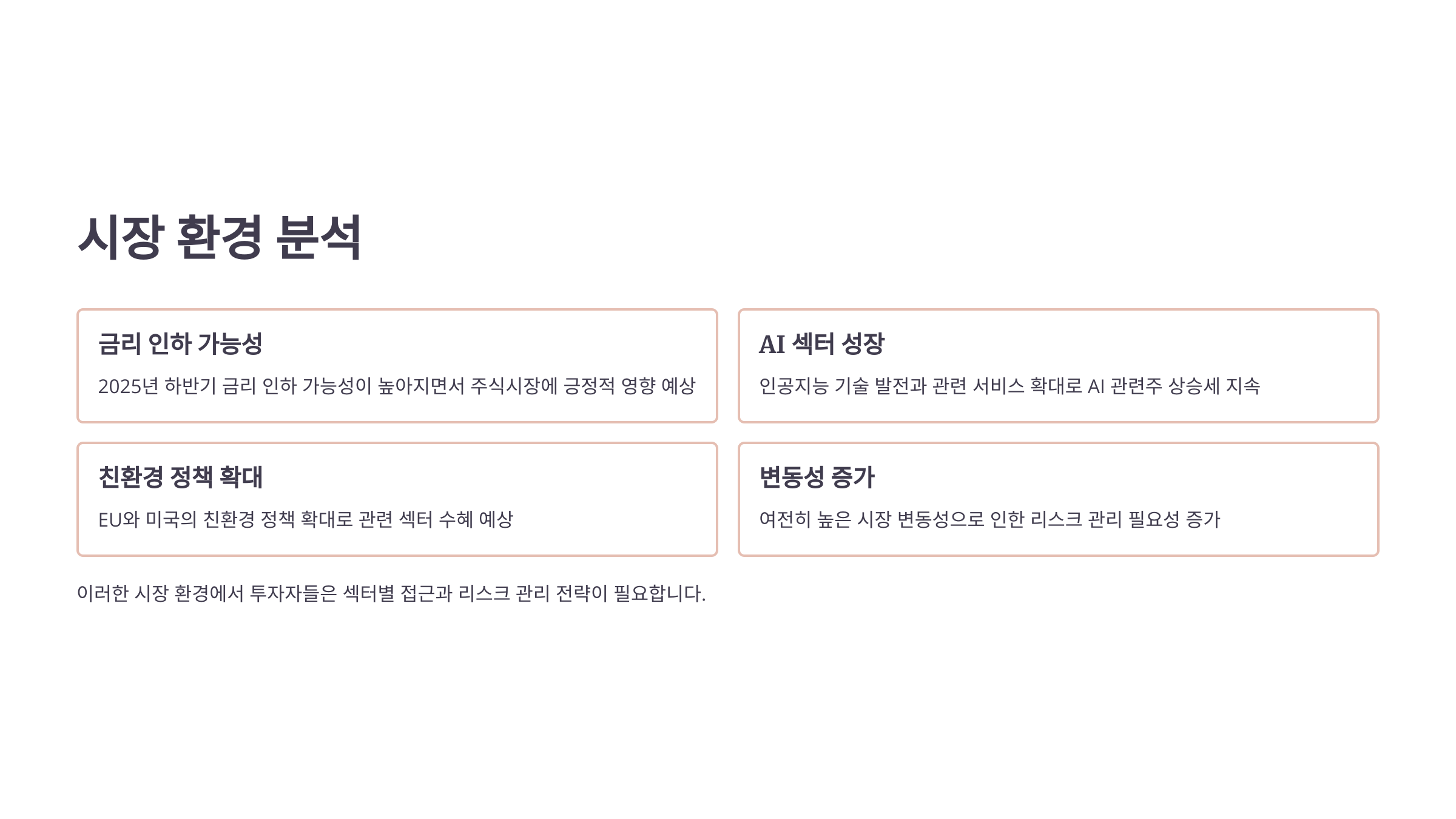 - 불확실한 시장에서도 유망 섹터 중심의 전략적 투자 가능