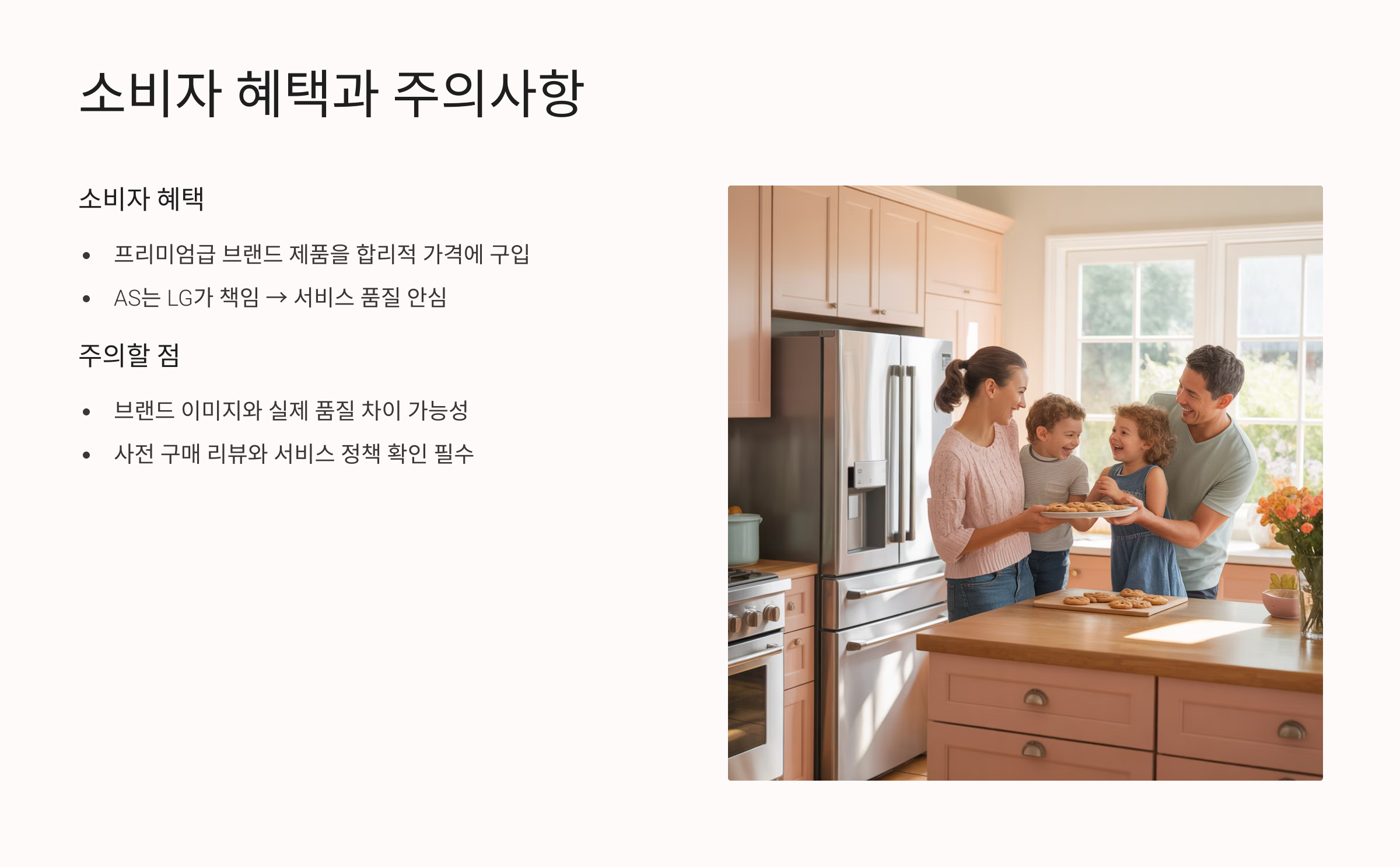 - 소비자: LG브랜드 신뢰 + 합리적 가격으로 구매 기회
