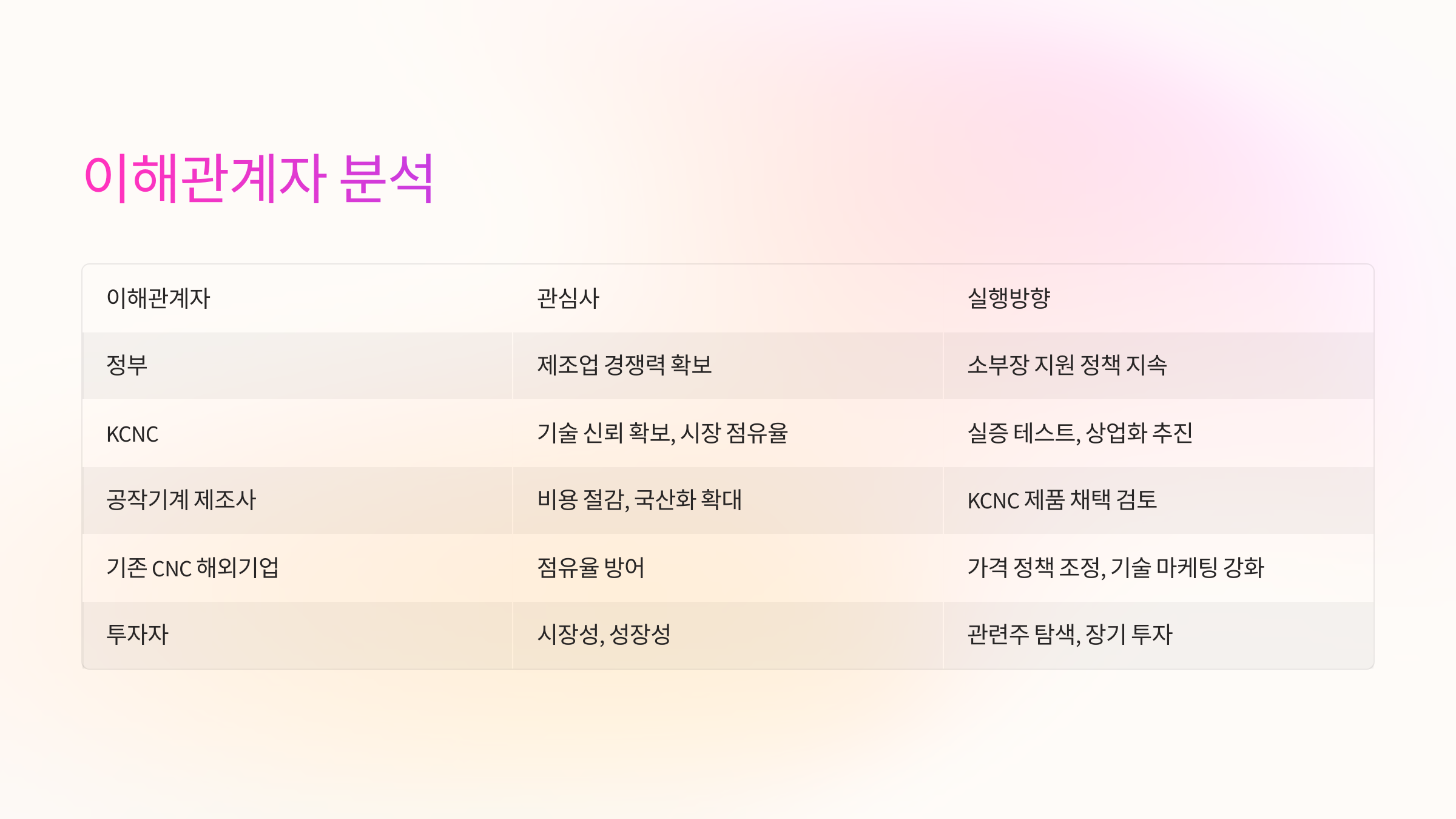 | 이해관계자 | 관심사 | 실행방향 |