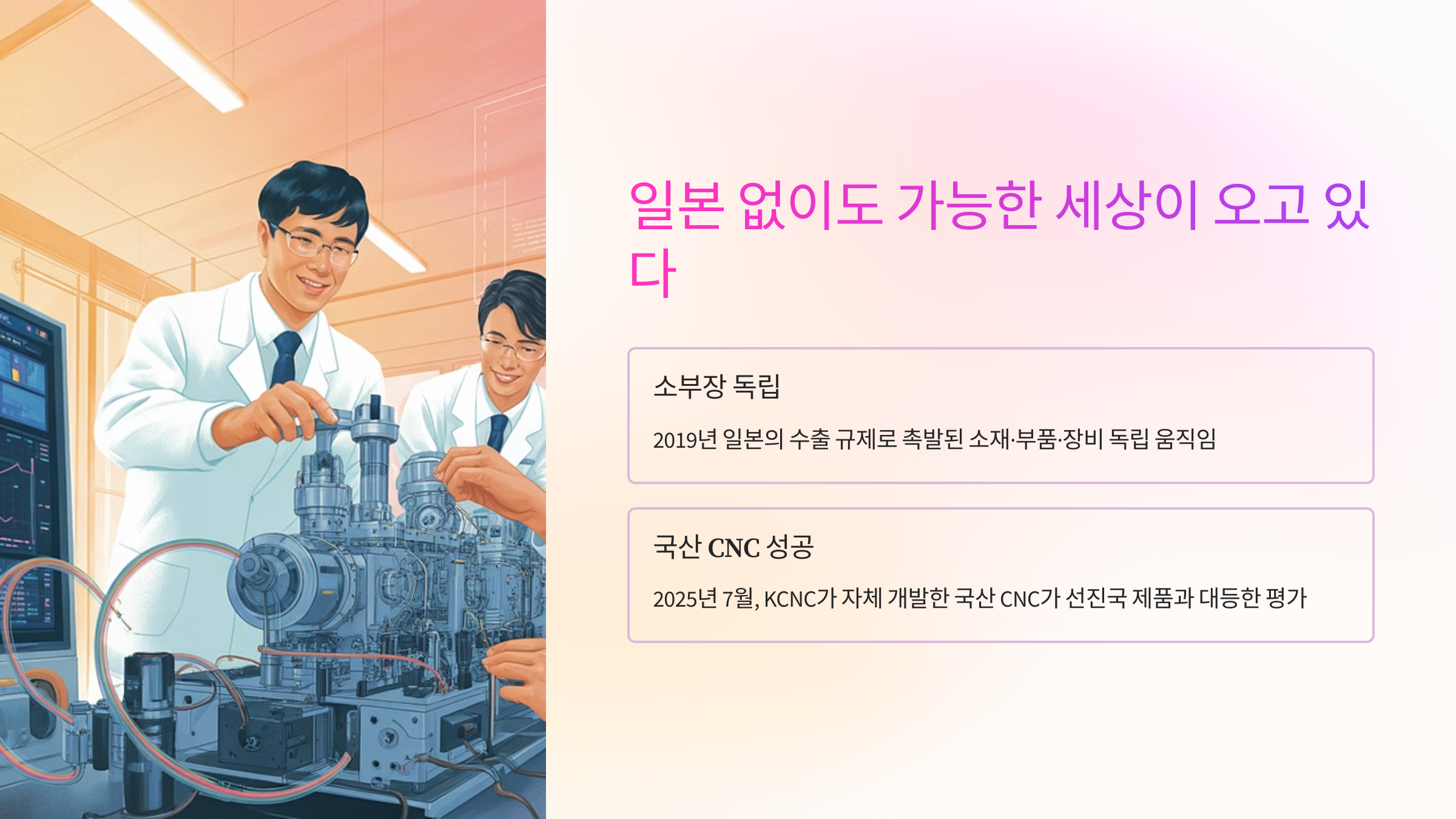 일본과의 무역 갈등이 불붙은 2019년, 정부는 CNC 국산화를 전략적으로 추진했습니다.