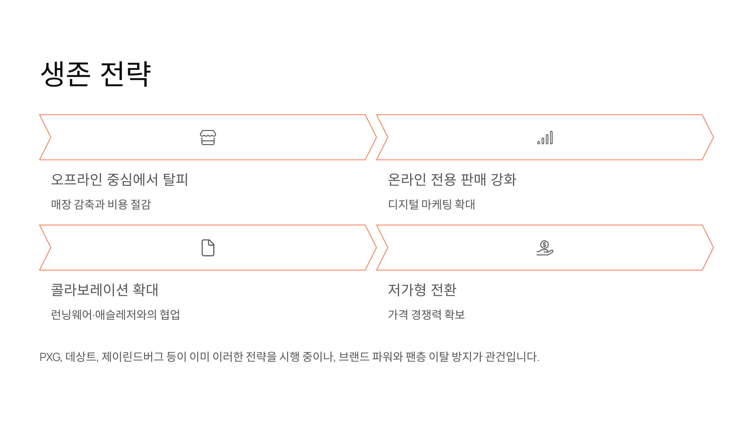 - 점포 구조조정: 수익성 없는 매장 폐쇄, 인력 감축으로 비용 절감
