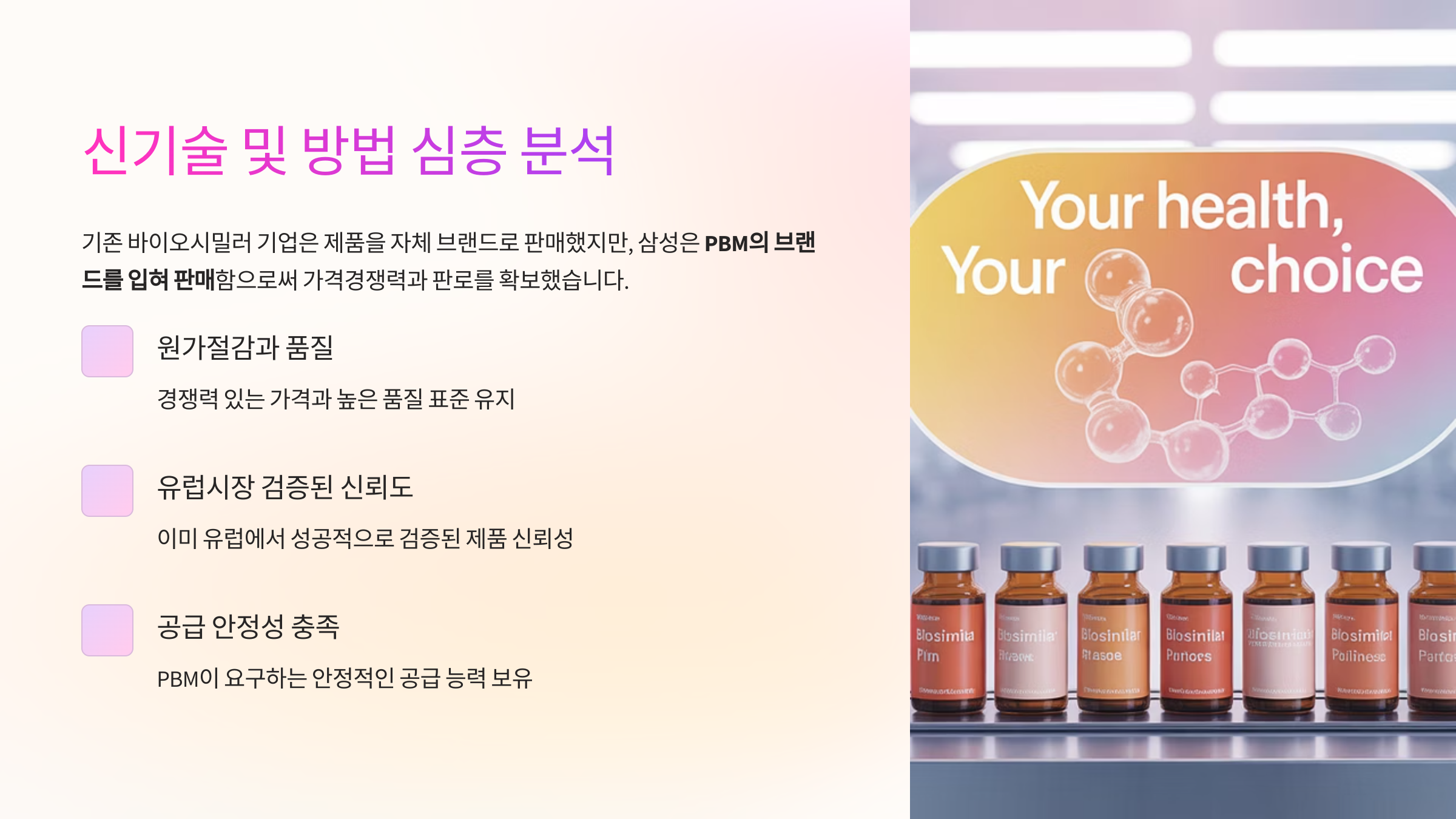 삼성은 PBM의 브랜드를 입혀 판매함으로써 가격경쟁력과 판로를 확보했습니다.