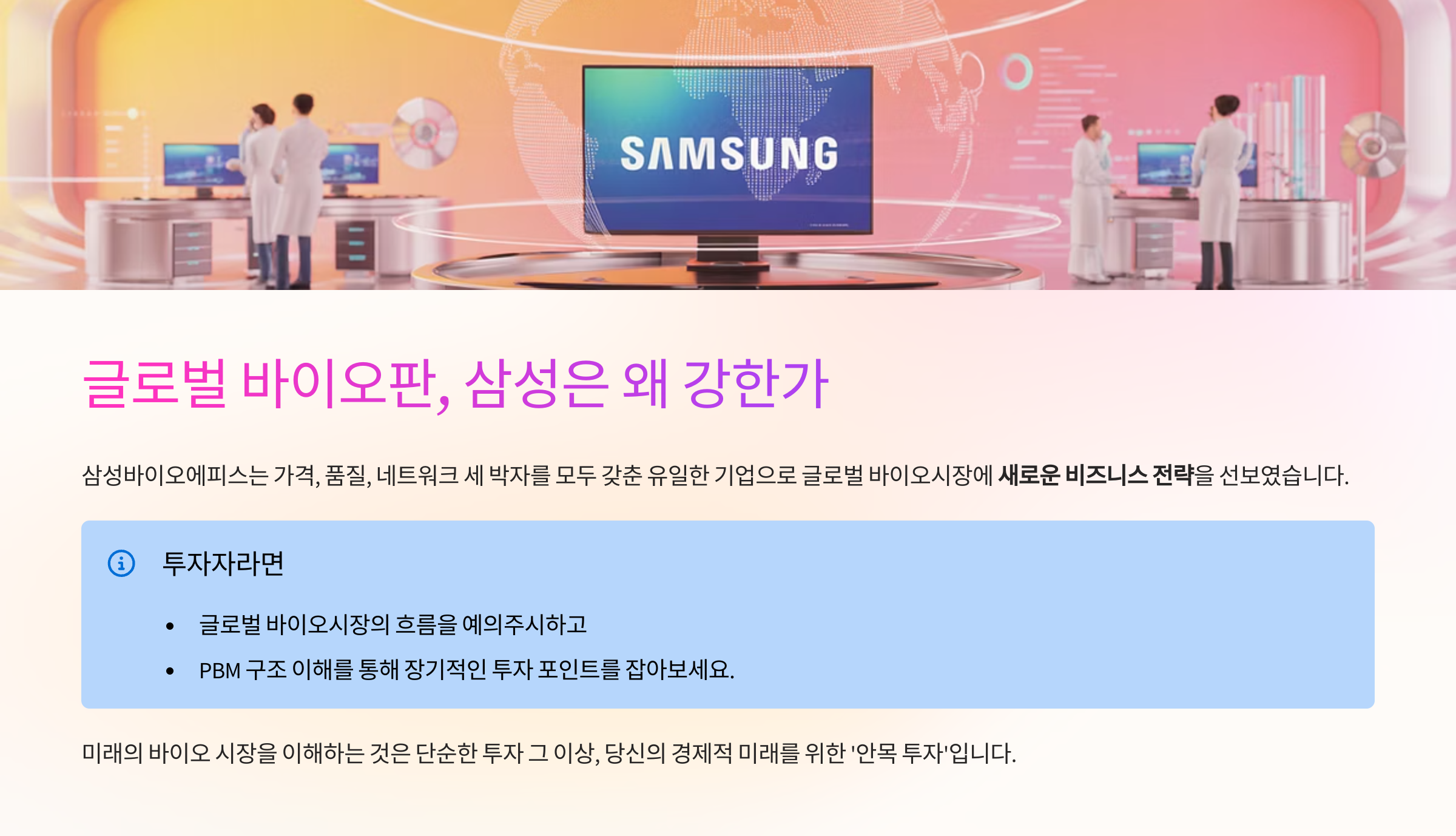 🔚 마무리 — 글로벌 바이오판, 삼성은 왜 강한가