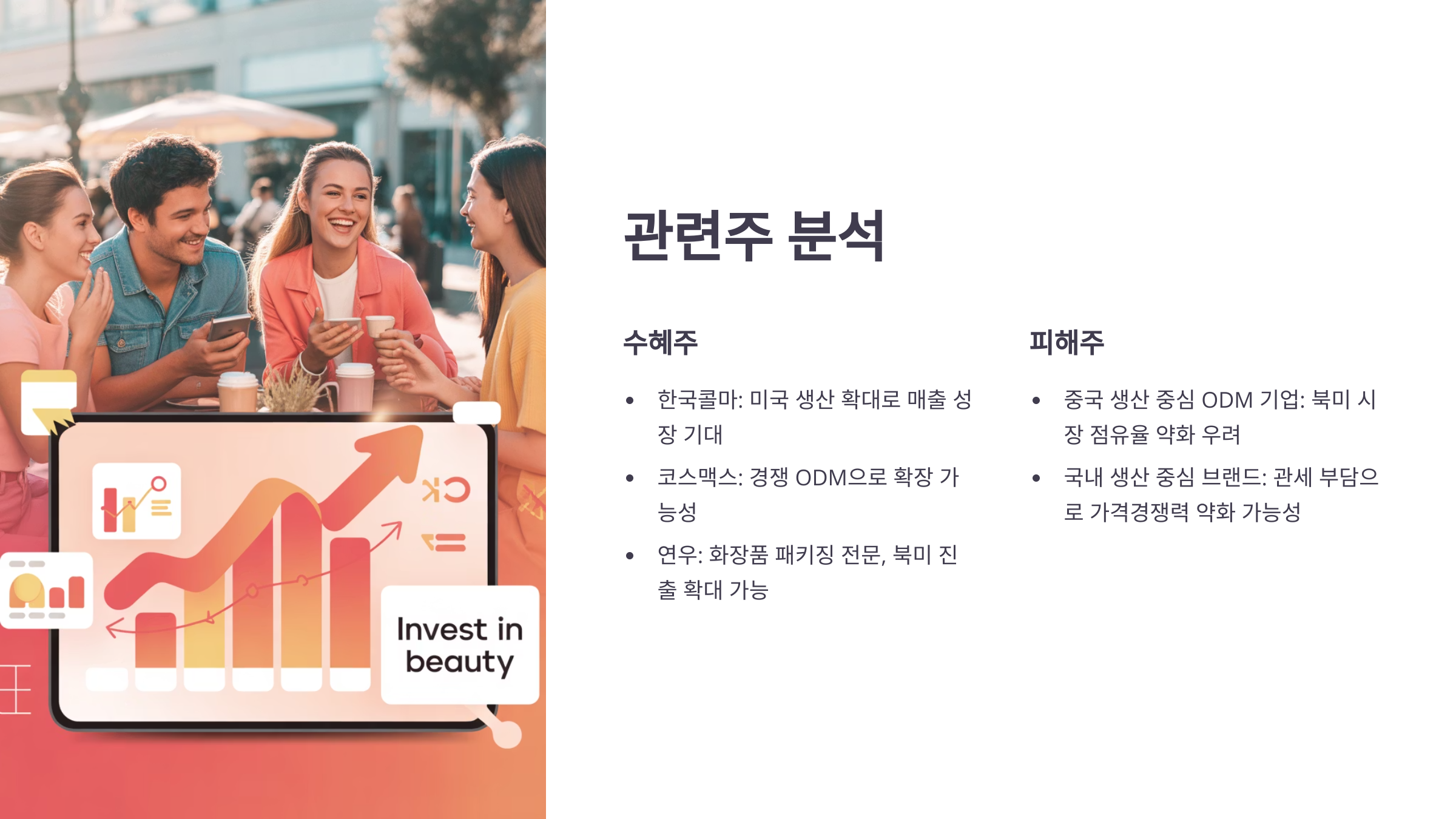 관세 리스크를 극복한 K뷰티가 시장을 확장할 여지는 충분합니다. 정책적으로도 미국은 현지 생산 및 고용을 유도하는 방향으로 가고 있어, 이번 투자는 그 흐름에 정확히 부합합니다.