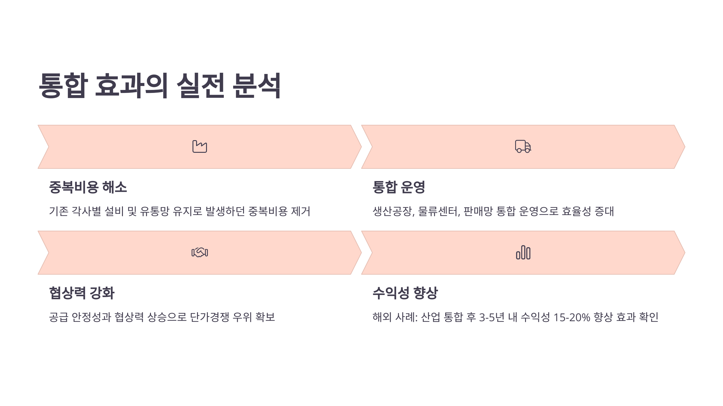 실제로 해외 사례를 보면, 산업 통합 후 3~6년 내 수익성 15~20% 향상 효과가 확인된 바 있습니다.