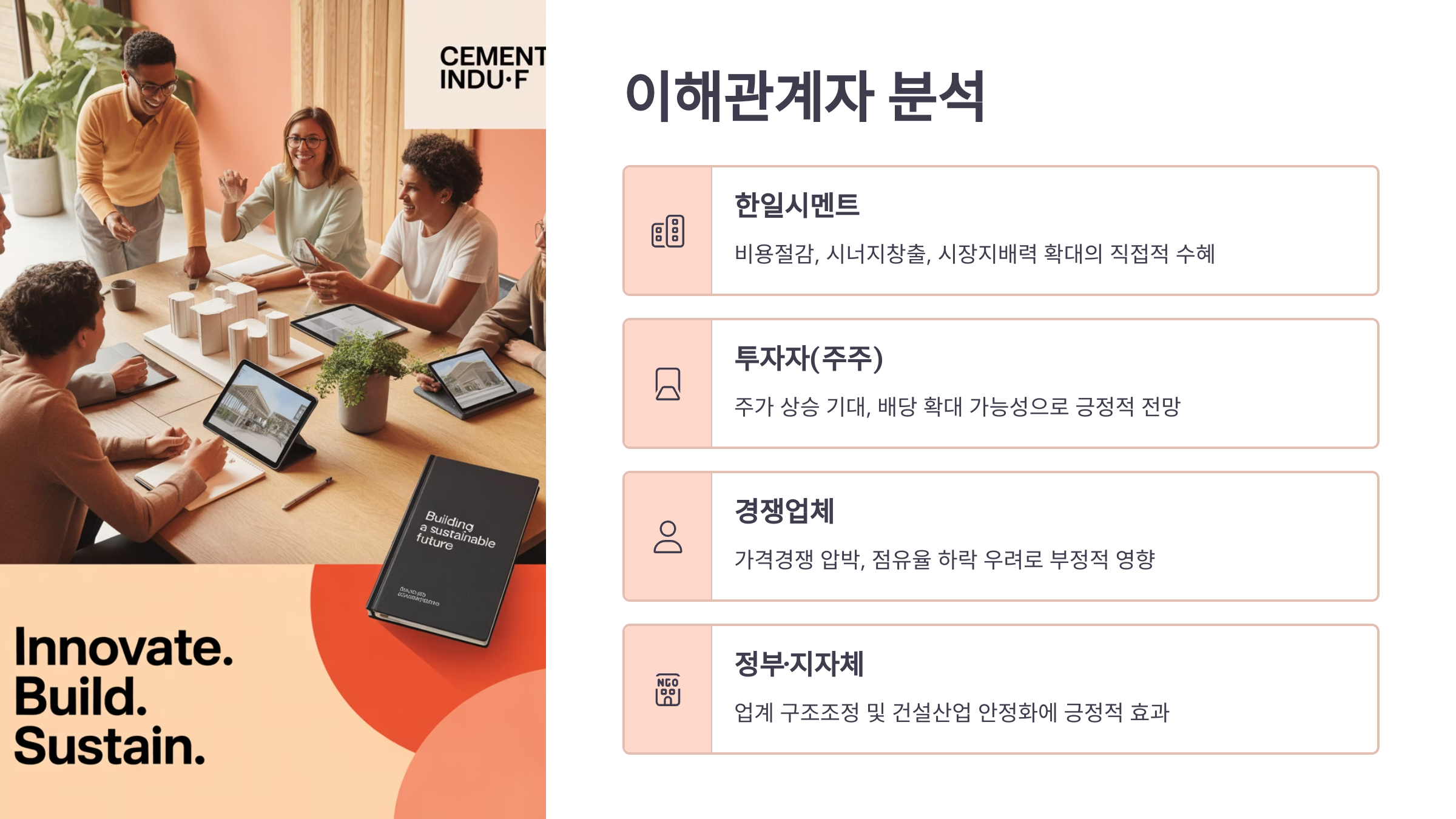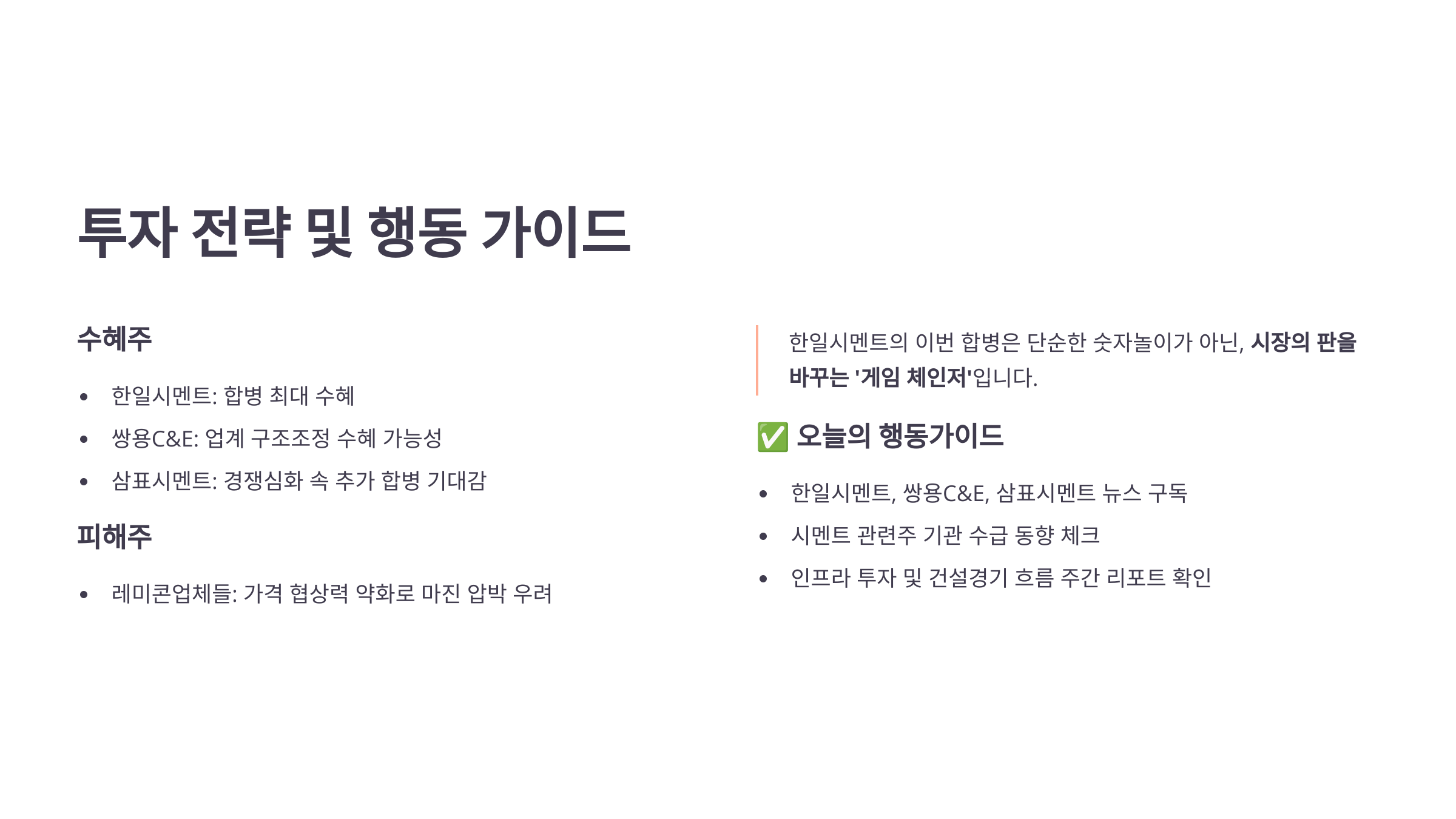 한일시멘트의 이번 합병은 단순한 숫자놀이가 아닌, 시장의 판을 바꾸는 ‘게임 체인저’입니다.