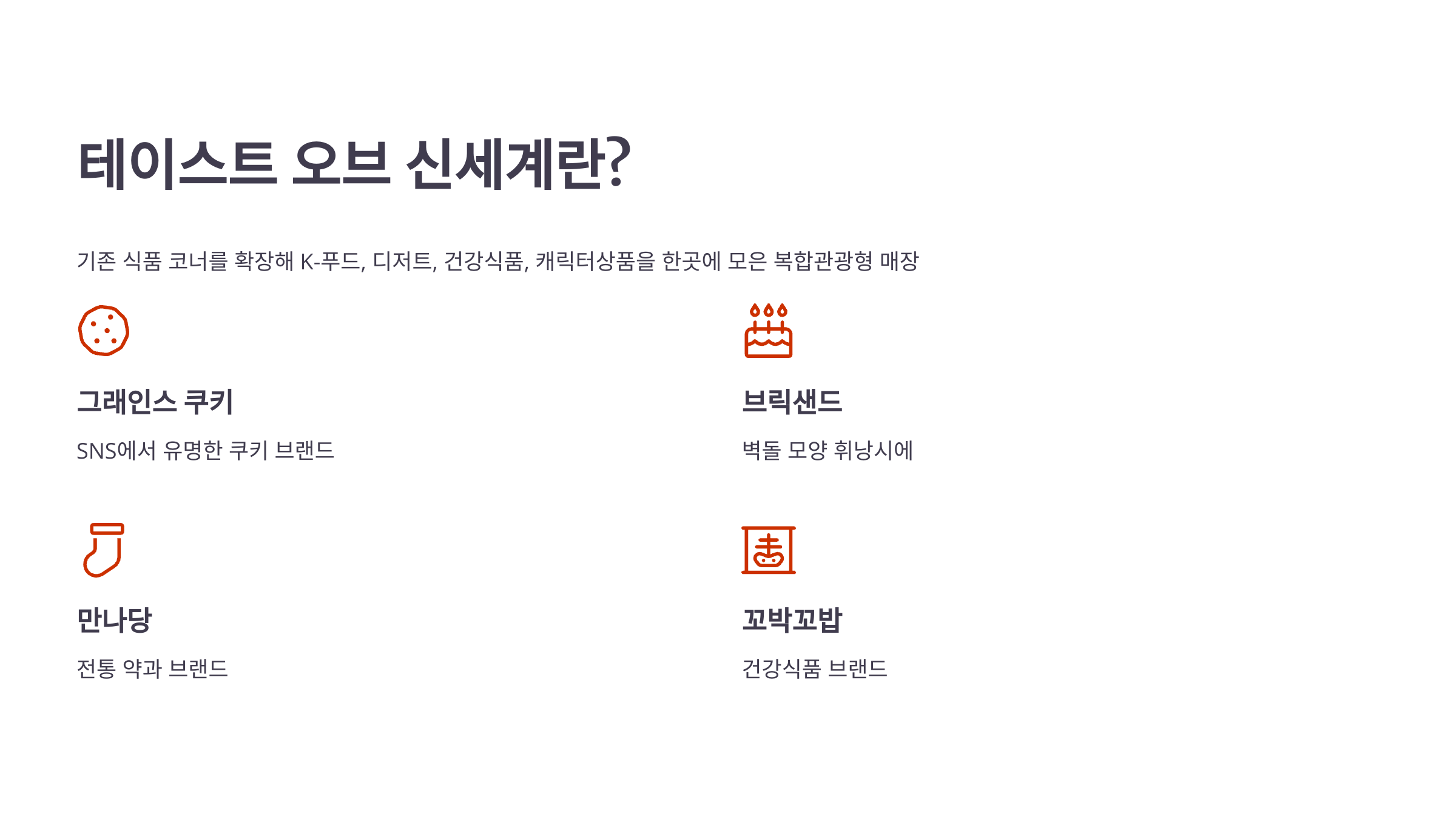 - 한류 캐릭터 상품, 디저트, 건강식품까지
