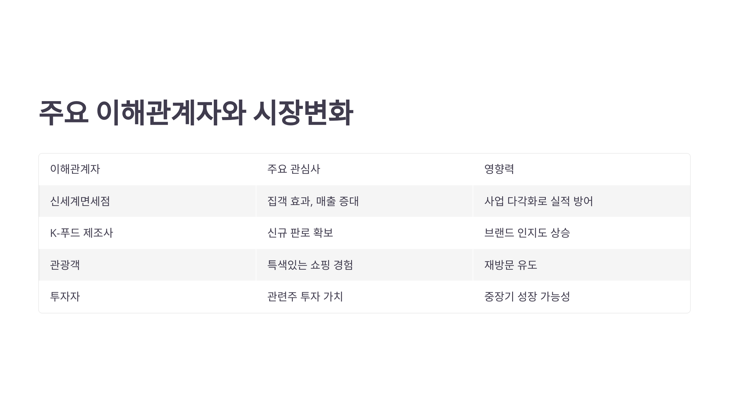 | 신세계면세점 | 집객 효과, 매출 증대 | 사업 다각화로 실적 방어 |