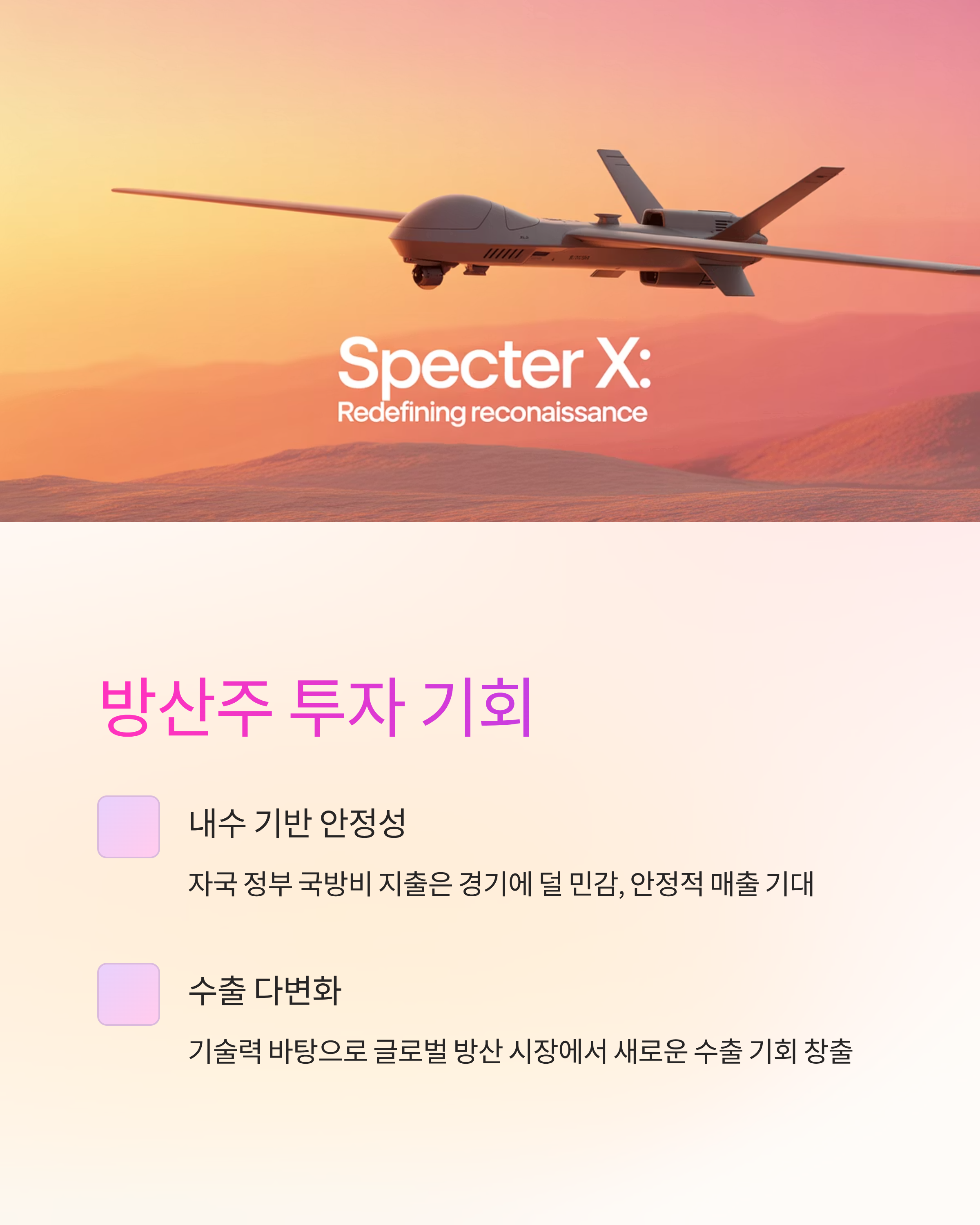 - 내수 기반 안정성: 자국 정부의 국방비 지출은 경기에 덜 민감하게 반응하므로, 비교적 안정적인 매출을 기대할 수 있습니다.