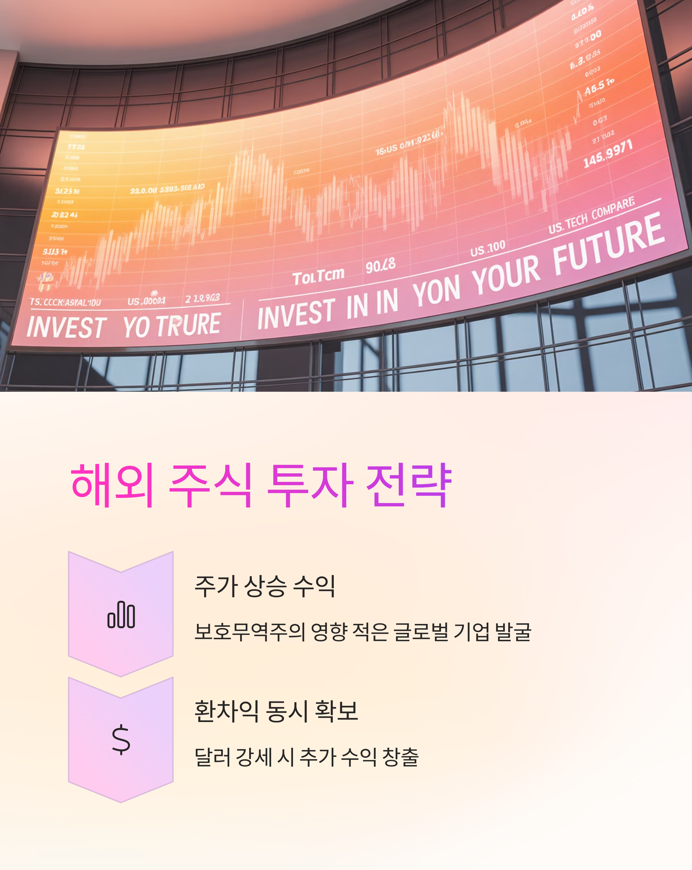 해외 주식 투자는 단순히 주가 상승을 통한 수익뿐만 아니라, 달러 강세 시 환차익까지 동시에 누릴 수 있는 강력한 투자 전략입니다. 특히 보호무역주의 영향을 덜 받는 글로벌 기업이나, 오히려 이러한 환경에서 성장하는 기업들을 발굴하는 것이 중요합니다.