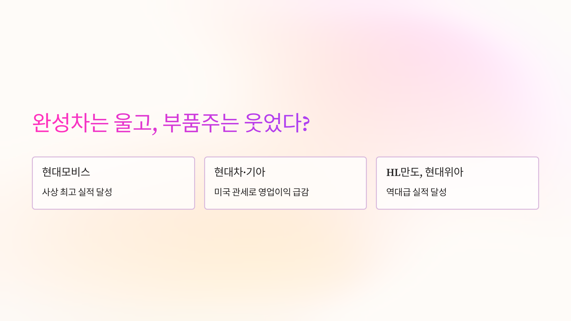 "완성차는 울고, 부품주는 웃었다?" 엇갈린 성적표 뒤에 숨겨진 진실!