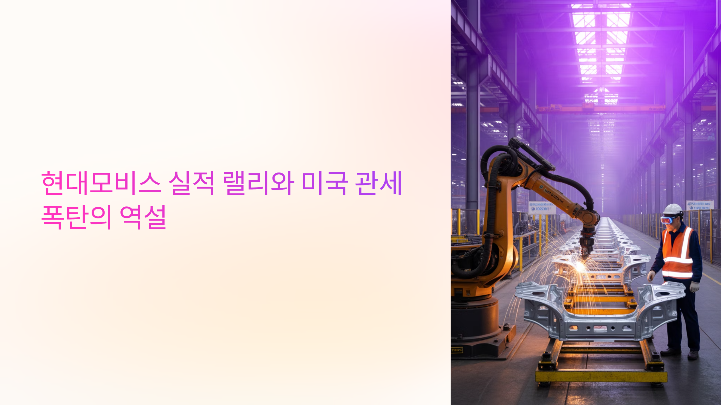 "아니, 분명 미국 관세 폭탄 때문에 자동차 업계가 난리라고 했는데, 왜 현대모비스는 사상 최고 실적을 냈다는 거죠? 혹시 제가 모르는 투자 기회가 숨어 있는 걸까요?" 최근 2분기 실적 발표는 많은 투자자와 일반 대중에게 혼란과 궁금증을 안겨주었습니다. 현대차와 기아가 미국의 '관세 폭탄'으로 영업이익이 급감한 반면, 현대모비스와 HL만도, 현대위아 등 자동차 부품주들은 오히려 역대급 실적을 달성하며 '실적 랠리'를 펼쳤기 때문입니다. 마치 완성차 업계의 위기가 부품사들에게는 뜻밖의 기회가 된 듯한 역설적인 상황. 하지만 이 놀라운 성적표 뒤에는 간과할 수 없는 불안감도 함께 드리워져 있습니다.