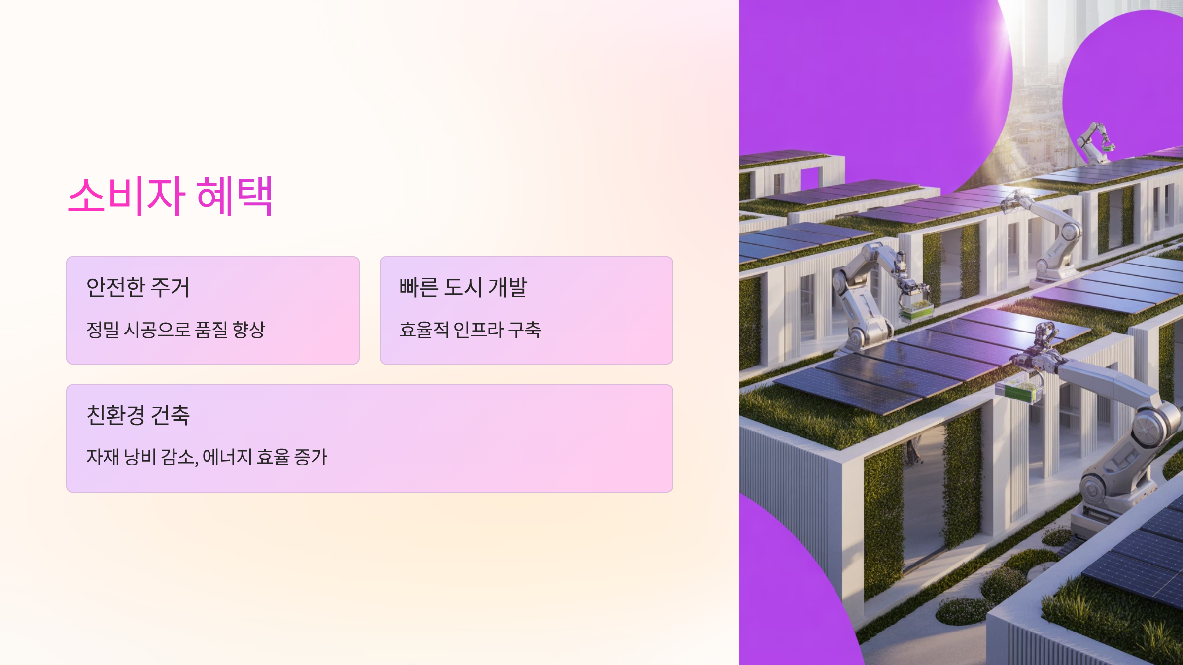 - 초기 기술 도입 비용: 스마트 건설 기술의 초기 도입 비용이 높을 수 있어, 당장은 주택 가격에 반영될 가능성도 있습니다.