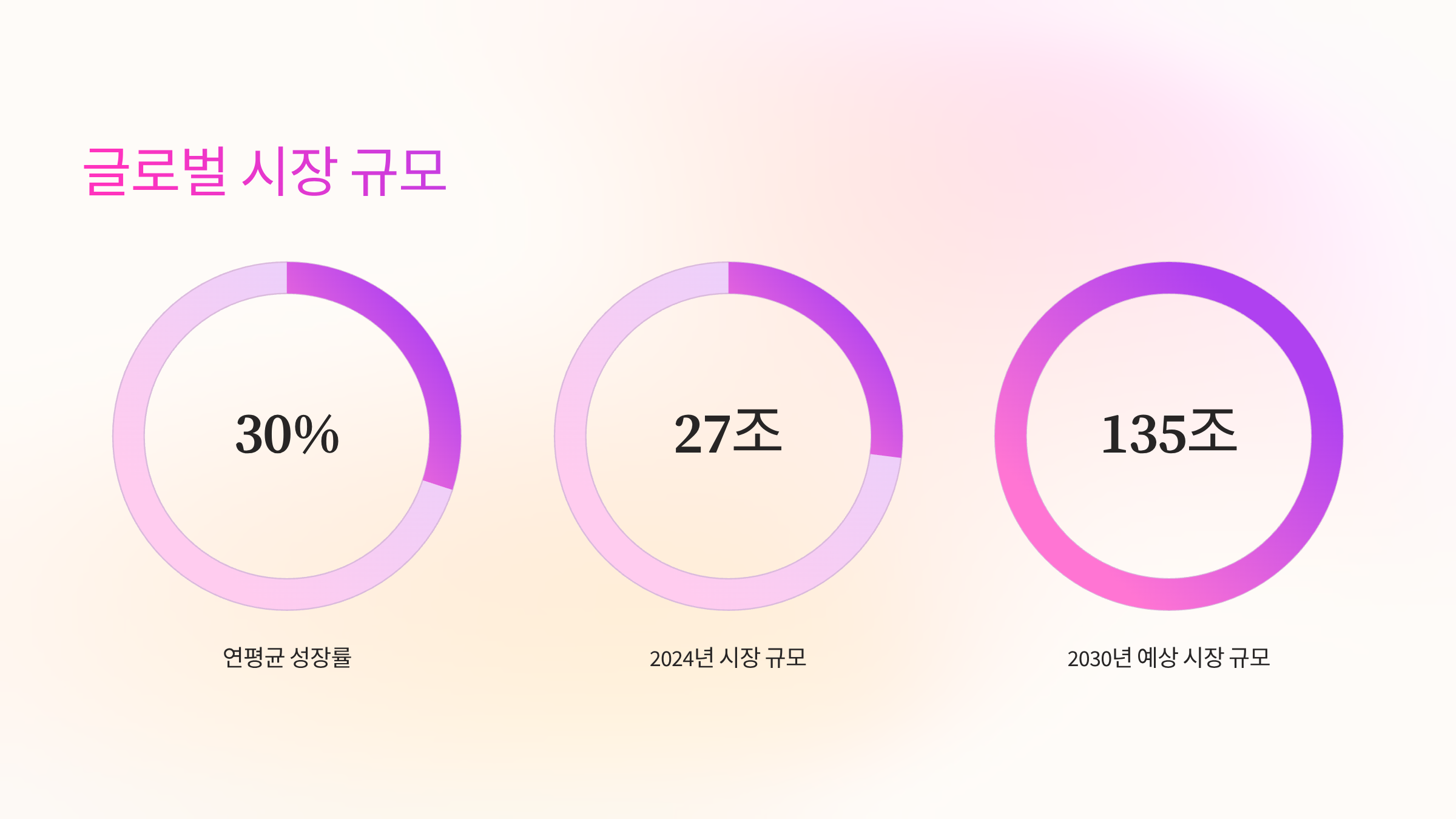 - 글로벌 부유식 인프라 시장 규모는 2024년 기준 약 200억 달러(한화 약 27조 원)로 추정되며, 2030년에는 1,000억 달러(한화 약 135조 원)를 넘어설 것으로 전망됩니다. 이는 연평균 30% 이상의 폭발적인 성장률을 의미하며, 미래 건설 시장의 핵심 블루오션으로 평가받고 있습니다.