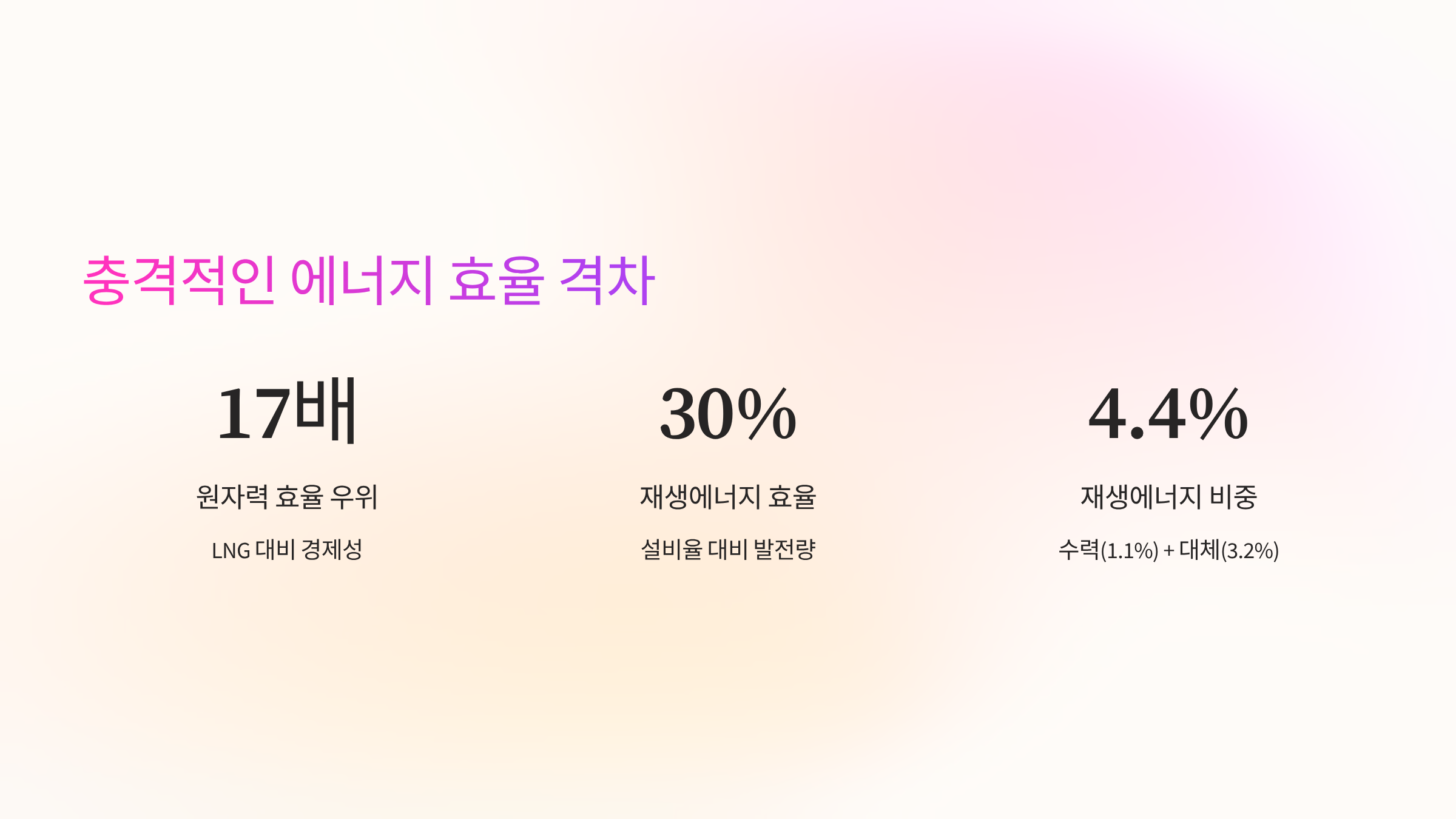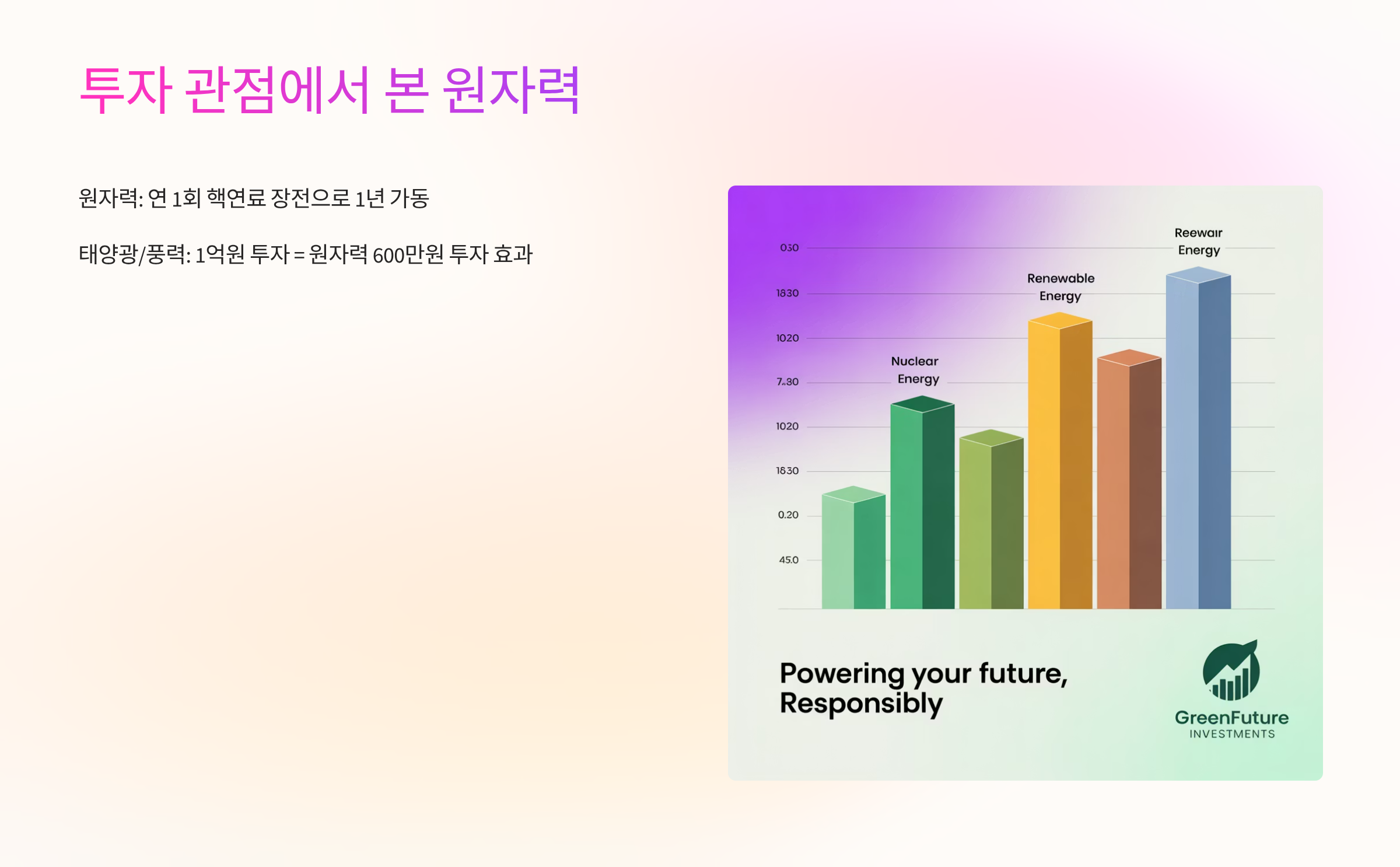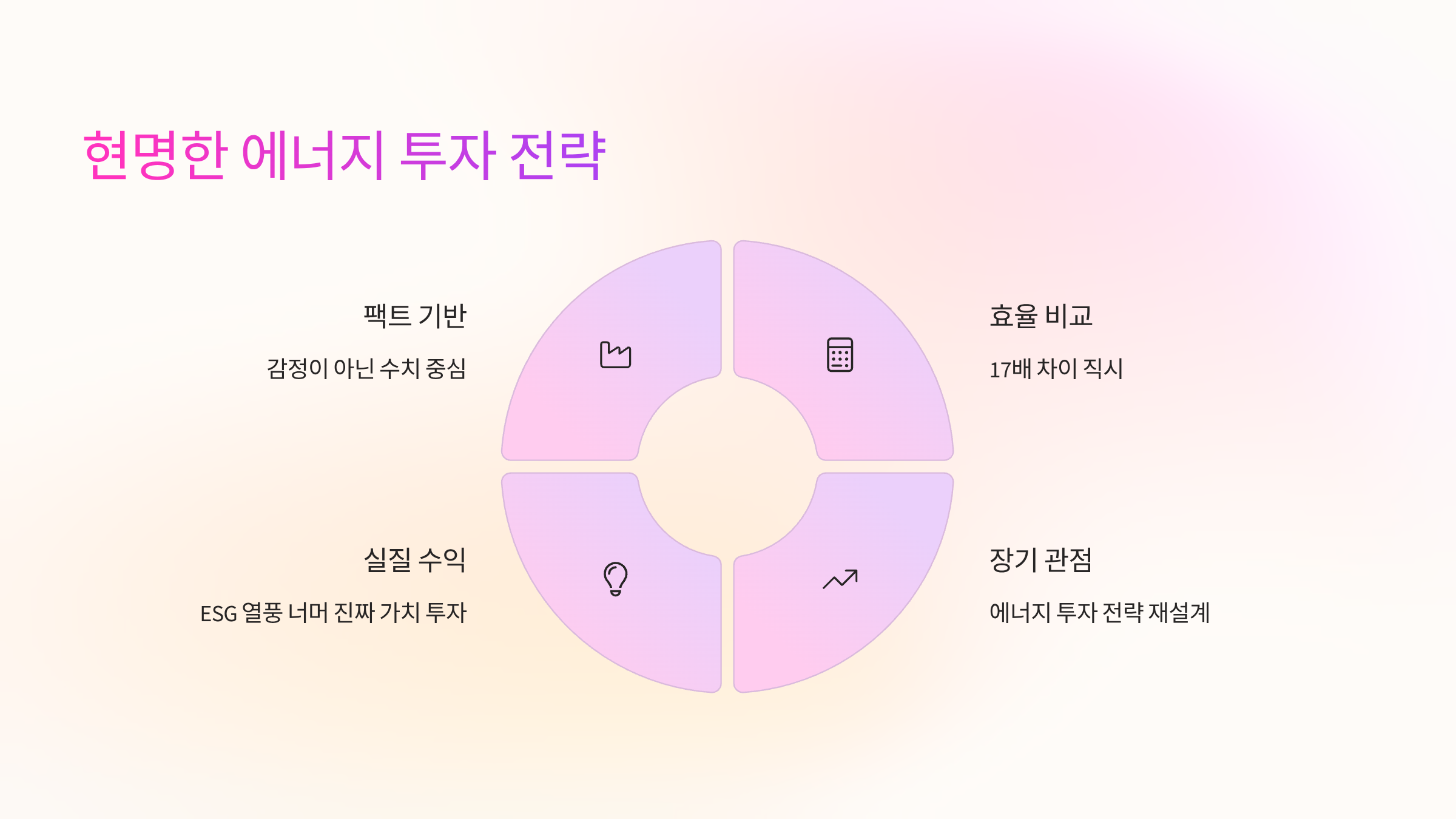 전력 투자의 핵심은 감정이 아닌 팩트와 수치에 기반해야 합니다. 17배의 효율 차이를 보이는 원자력과 재생에너지 중 어디에 투자할지는 명확합니다. 정치적 이념에 휘둘리지 말고, 실질적인 수익을 가져다주는 에너지원에 주목하세요.