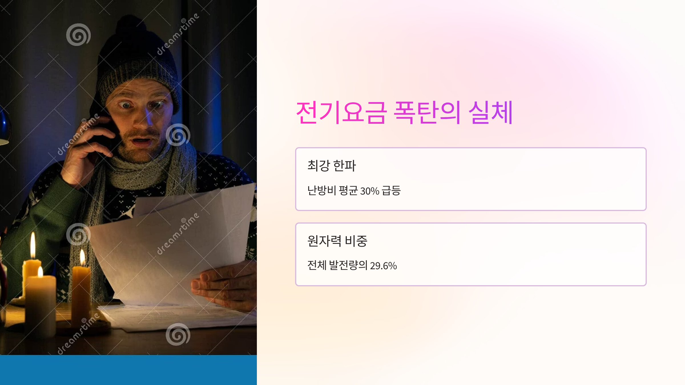 올겨울 최강 한파로 난방비가 평균 30% 급등하며 전국이 전력비용 쇼크에 휩싸였습니다. 많은 가정과 기업들이 치솟는 전기요금에 신음하고 있지만, 정작 이 문제의 근본적인 해법에 대해서는 제대로 알지 못하고 있습니다.