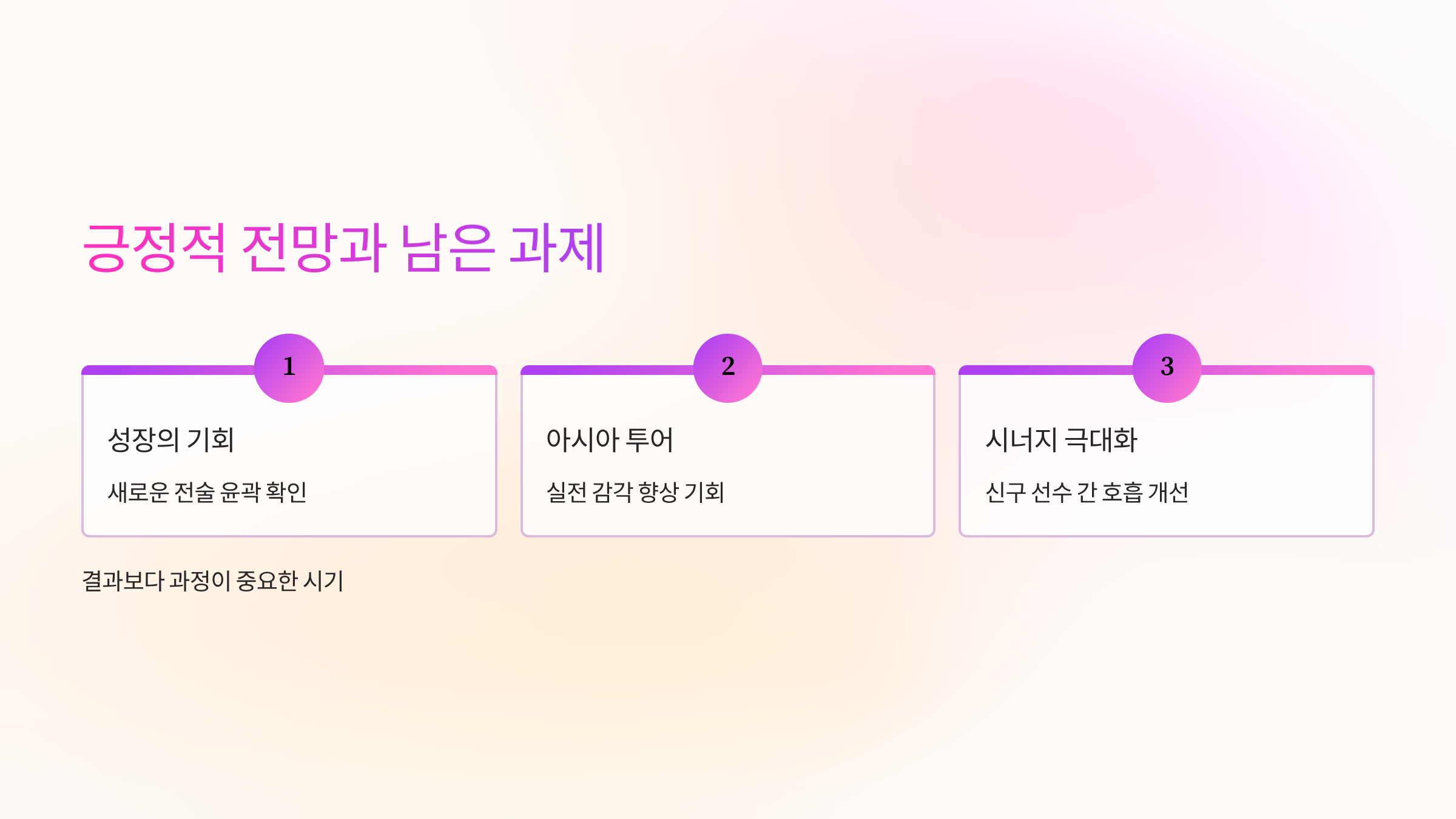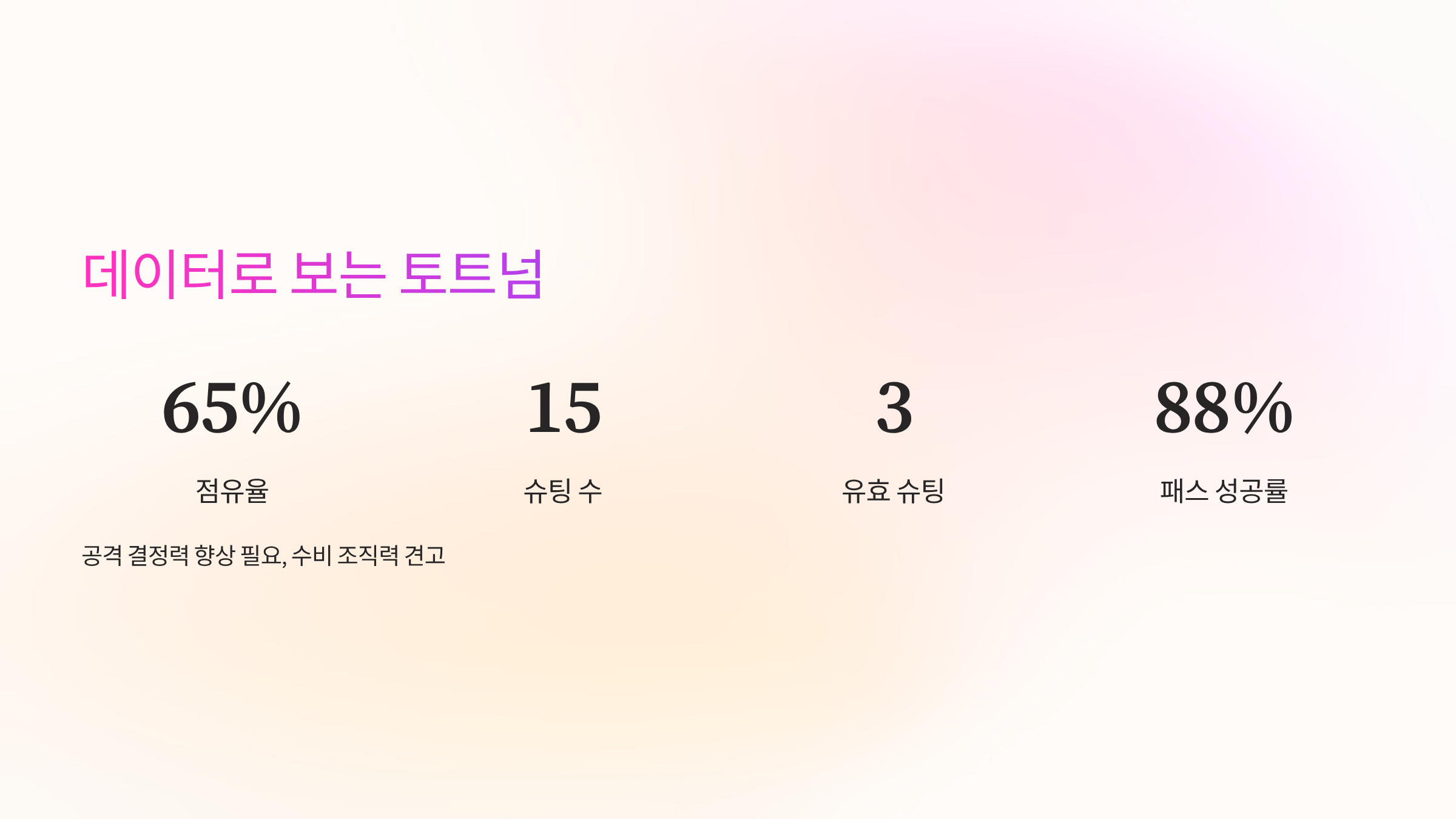 또한, 수비 라인의 조직력은 상당히 견고해진 모습을 보였습니다. 특히 신입 수비수들의 합류는 팀의 수비 안정화에 큰 기여를 할 것으로 예상됩니다. 이러한 경기 데이터를 통해 우리는 토트넘이 특정 부분에서는 강점을 보였지만, 또 다른 부분에서는 보완이 필요하다는 것을 객관적으로 파악할 수 있습니다.