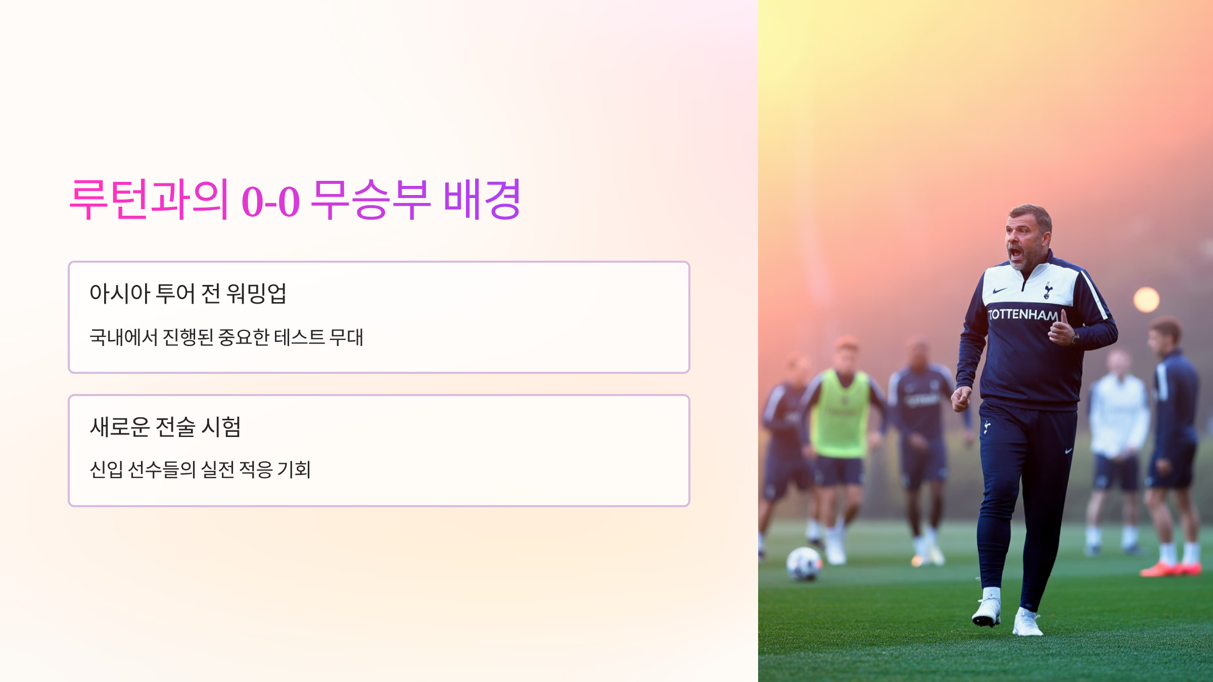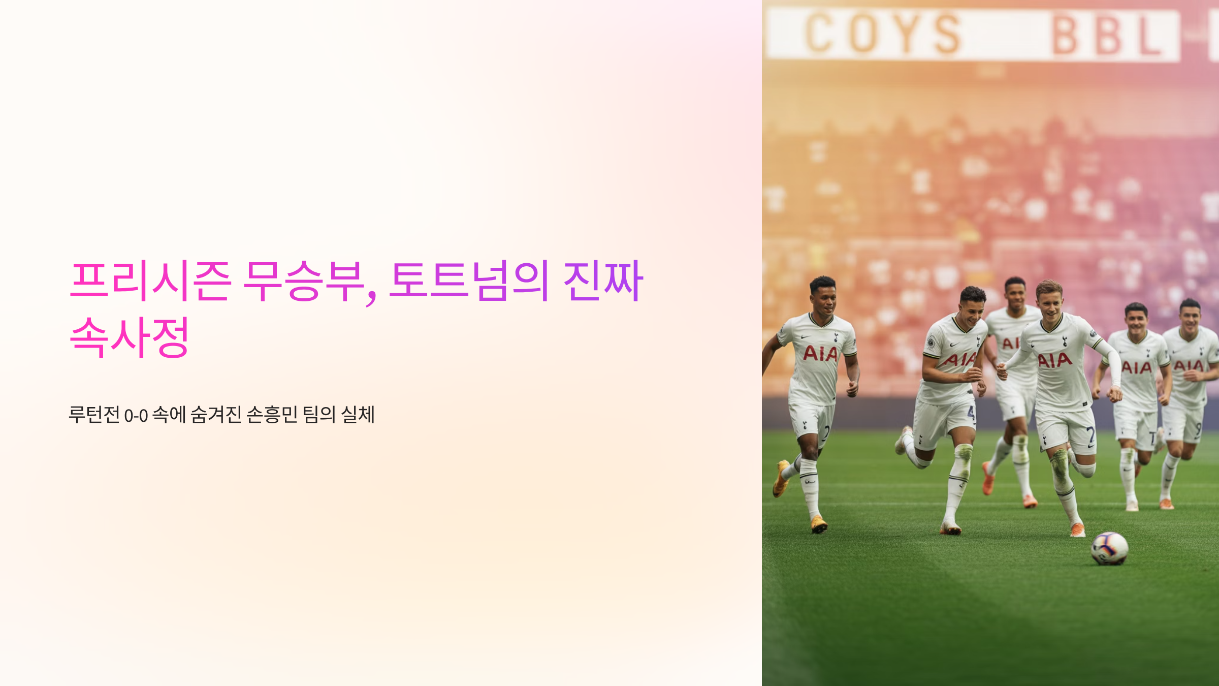 이번 글에서는 단순한 경기 결과를 넘어, 루턴 vs 토트넘 프리시즌 경기 속에 숨겨진 토트넘 손흥민 팀의 진짜 속사정을 파헤쳐 독자 여러분의 궁금증을 해소해 드리고자 합니다. 토트넘 투어 일정과 향후 프리미어리그 전망까지, 이 글을 통해 프리시즌 경기를 깊이 있게 분석하고 새로운 시즌을 더 재미있게 즐기는 방법을 얻어가시길 바랍니다.